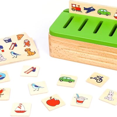 En ouvrant, fermant, remplissant et vidant cette boîte, l’enfant explore son besoin naturel d’ordre, de collection et de symbolique.