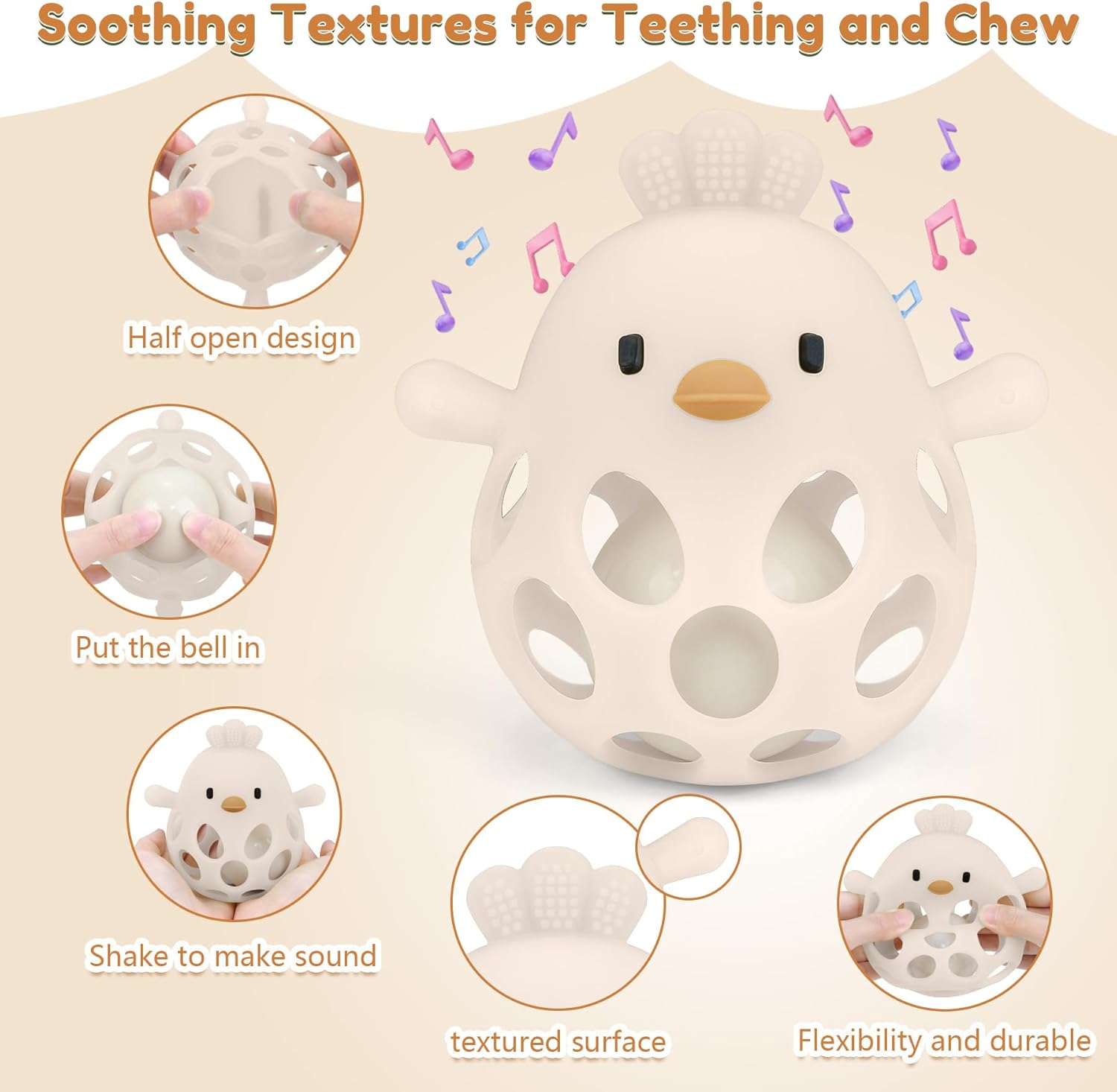 Stimulez les sens et apaisez les gencives de votre bébé avec ce hochet multifonction en silicone alimentaire, doux, sécurisé et facile à nettoyer.