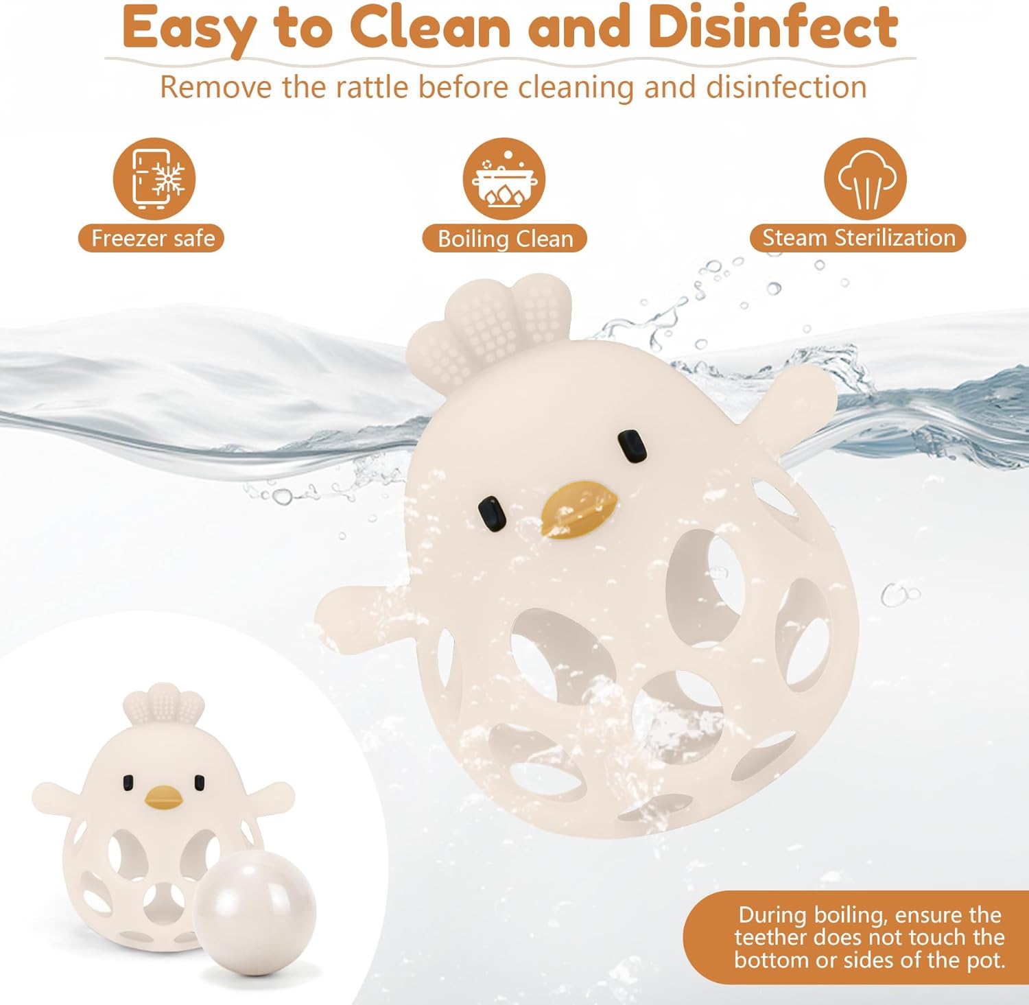Conçu pour simplifier le quotidien des parents, ce hochet est extrêmement facile à entretenir. Il se lave simplement avec de l’eau tiède et un savon doux, ou peut être placé au lave-vaisselle pour un nettoyage encore plus pratique. Pour une hygiène optimale, vous pouvez également stériliser la partie en silicone dans de l’eau bouillante (en retirant le hochet au préalable) pendant moins d’une minute.