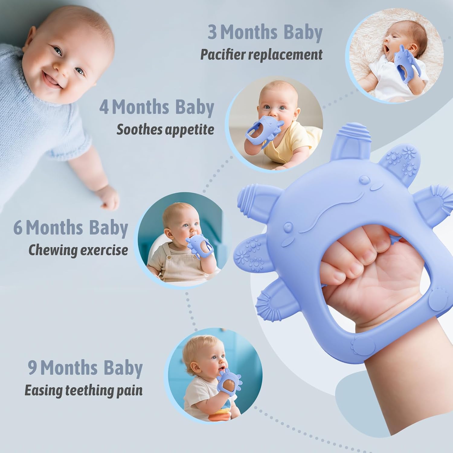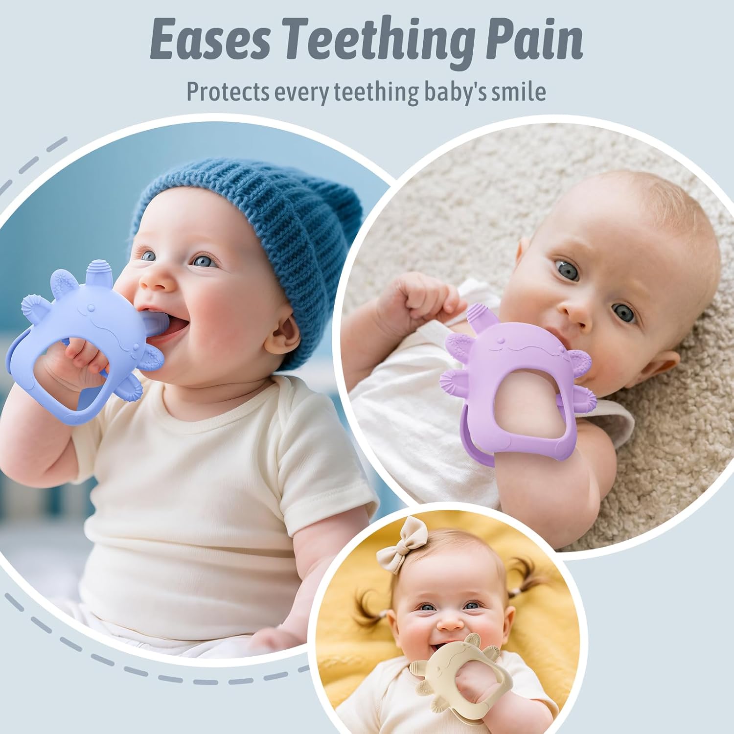 - Jouet de dentition, soulageant efficacement les douleurs liées à la poussée des dents.