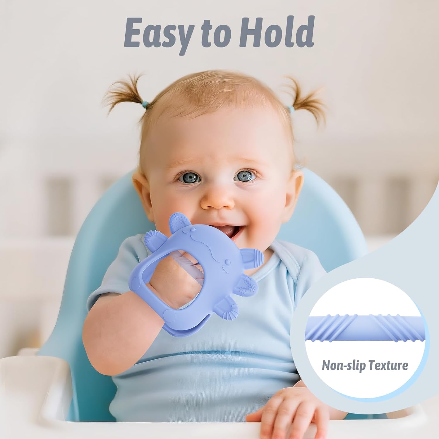 Grâce à sa conception ergonomique, cet anneau de dentition est parfaitement dimensionné pour s’adapter aux mains délicates des nourrissons. Sa texture antidérapante garantit une prise en main stable et sécurisée, ce qui aide bébé à développer sa coordination et sa motricité fine. Facile à manipuler, il encourage l’autonomie de l’enfant tout en renforçant sa confiance. Un accessoire pensé pour allier confort et développement.