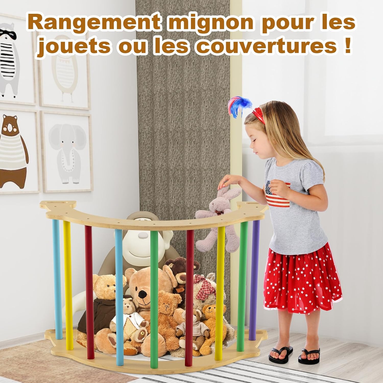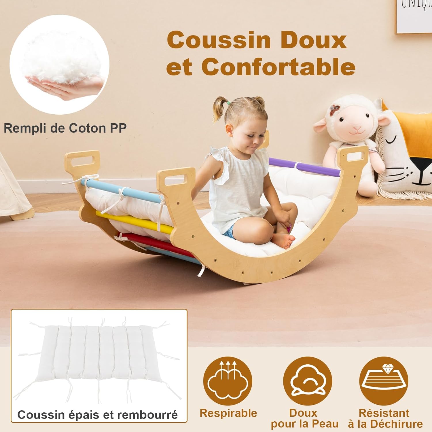 Retournez simplement l’arche pour la transformer en une bascule confortable. Idéale pour se reposer, lire ou même imaginer des aventures fantastiques, cette fonctionnalité ajoute une dimension apaisante à ce jouet polyvalent. Elle peut également devenir un bateau à bascule ou un lit improvisé, laissant libre cours à l’imagination débordante des enfants.