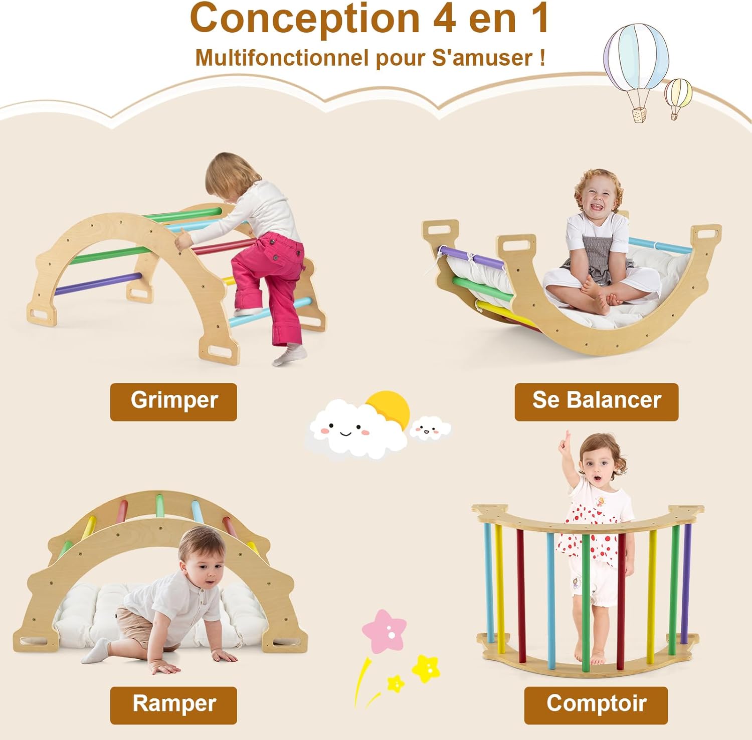 Offrez à vos enfants une expérience ludique et éducative avec cette arche d’escalade 2-en-1 en bois. Conçue pour stimuler leur développement moteur, leur équilibre et leur créativité, elle se transforme en un tour de main d’une échelle d’escalade à une bascule apaisante. Adaptée dès l’âge d’un an, elle accompagne les tout-petits dans leurs découvertes tout en garantissant des moments de plaisir et d’apprentissage uniques.