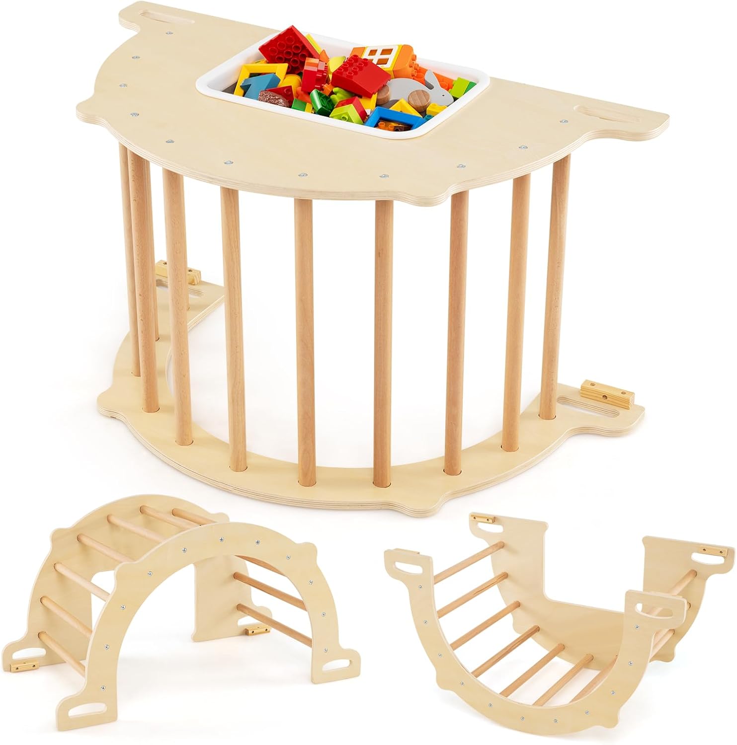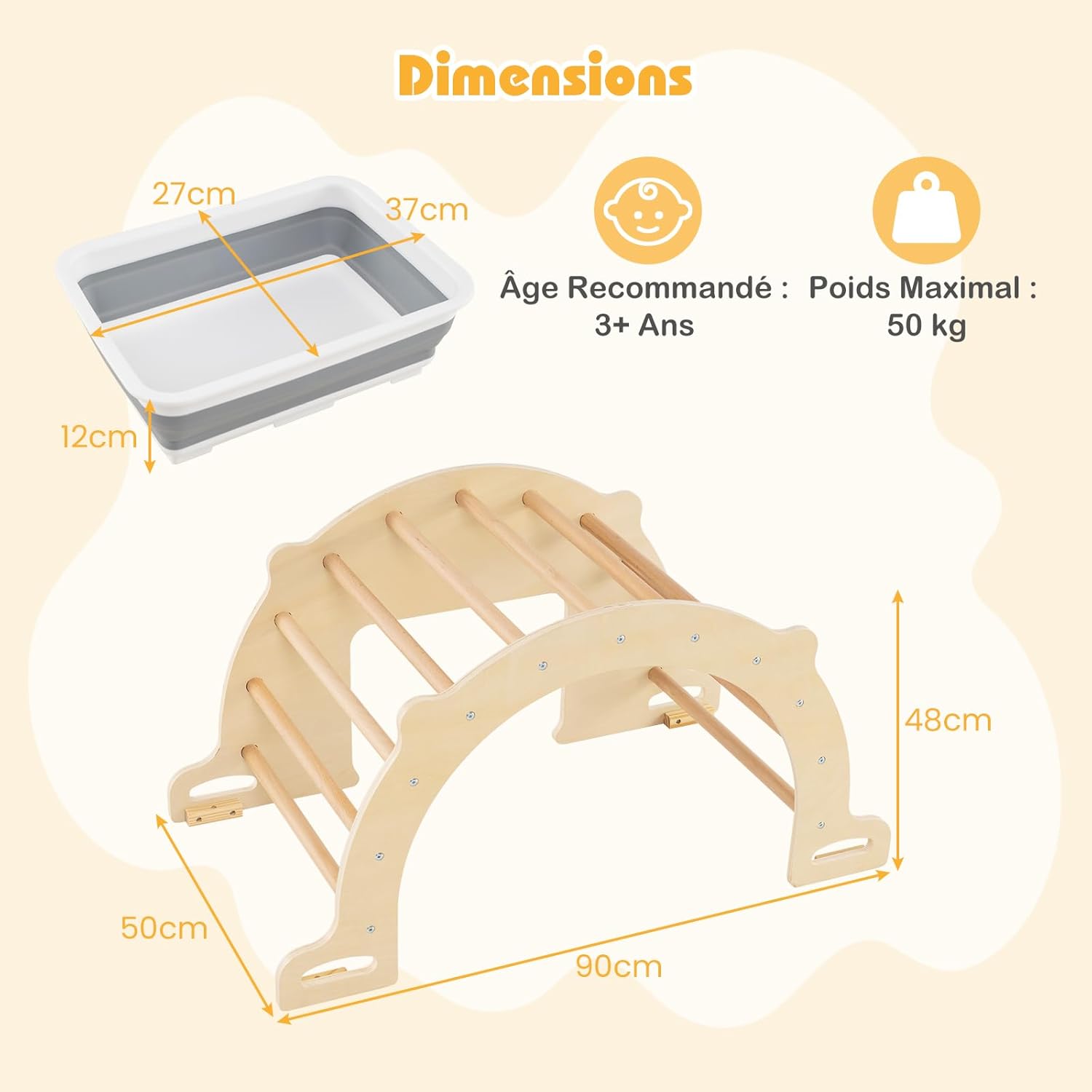 arche d’escalade montessori 8 en 1 avec cheval à bascule et rangement