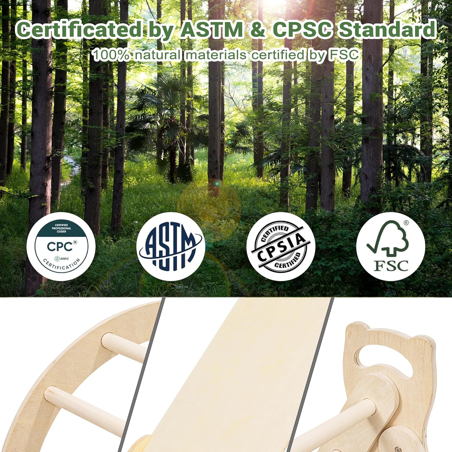 Fabriquée à partir de bois 100 % naturel certifié par le FSC, cette arche d’escalade garantit un environnement de jeu sûr et sain. Conforme aux normes ASTM et CPSC, elle ne contient aucun produit toxique ni odeur désagréable. Les coins et bords soigneusement polis offrent une finition lisse, éliminant tout risque de blessure. Vous pouvez ainsi laisser votre enfant s’amuser en toute sérénité.