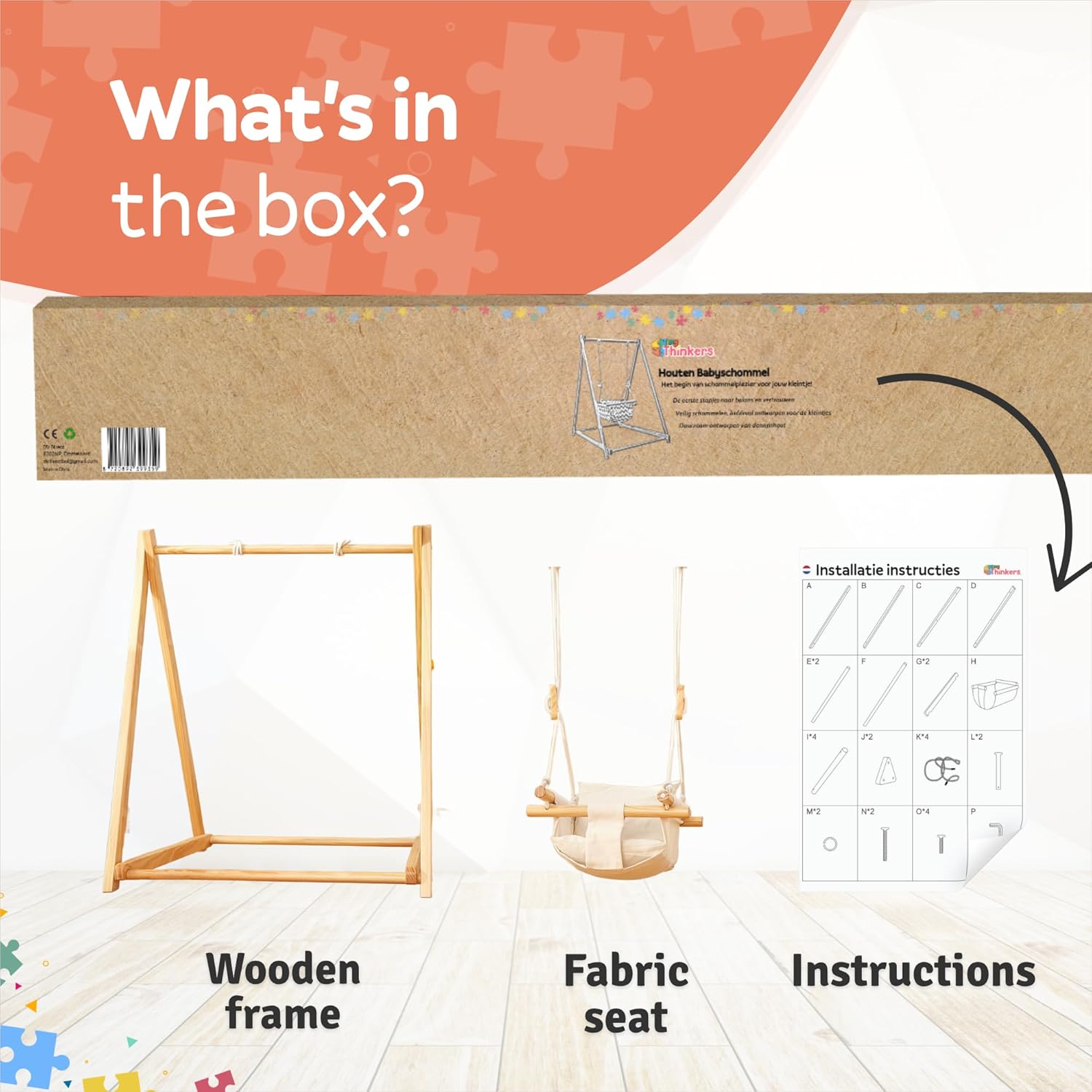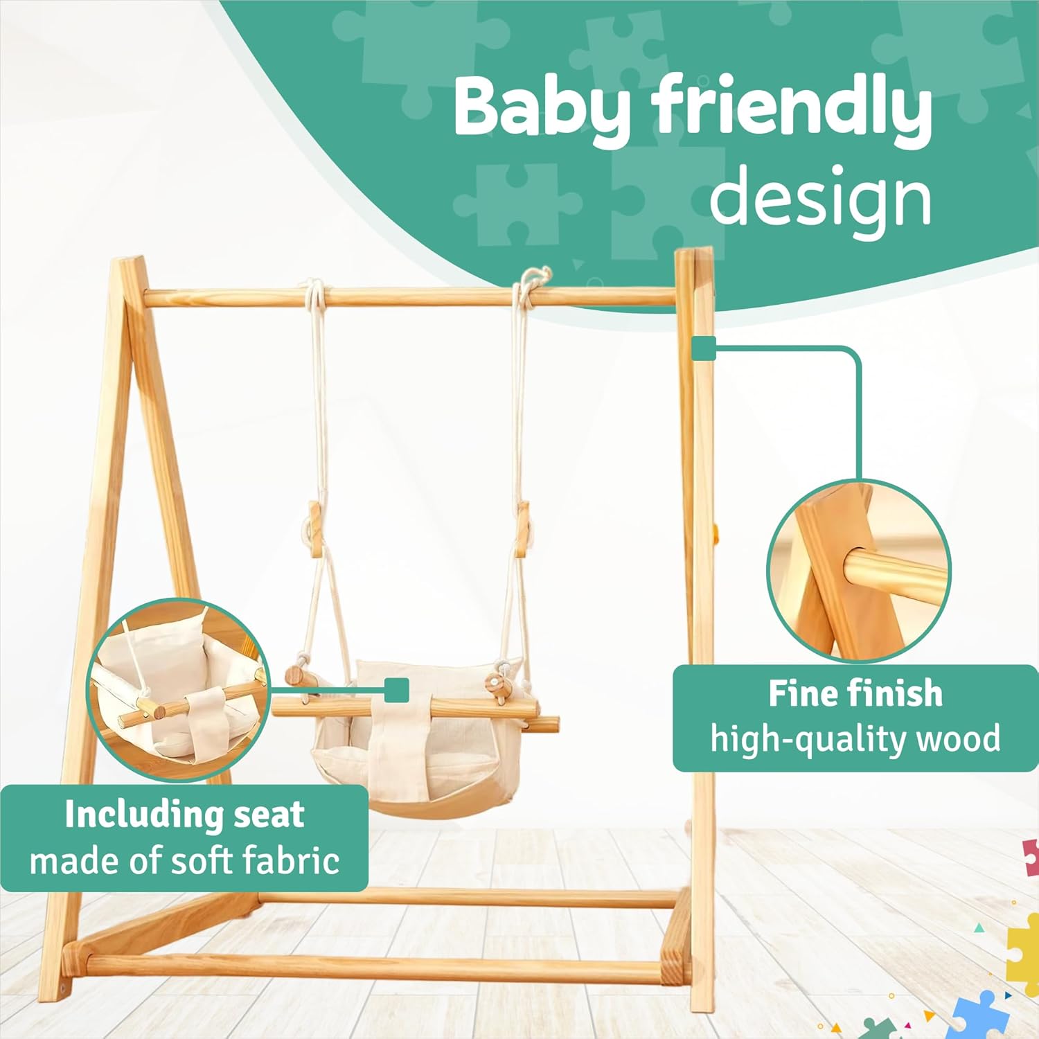 La sécurité de votre bébé est notre priorité. Fabriquée à partir de bois de pin robuste, cette balançoire garantit une stabilité irréprochable. Sa conception solide permet d’accueillir les enfants jusqu’à 20 kg, tout en offrant un maintien fiable pour une utilisation en toute sérénité. Avec des finitions soignées et des matériaux naturels, elle accompagne chaque mouvement de votre enfant sans compromis sur sa sécurité.