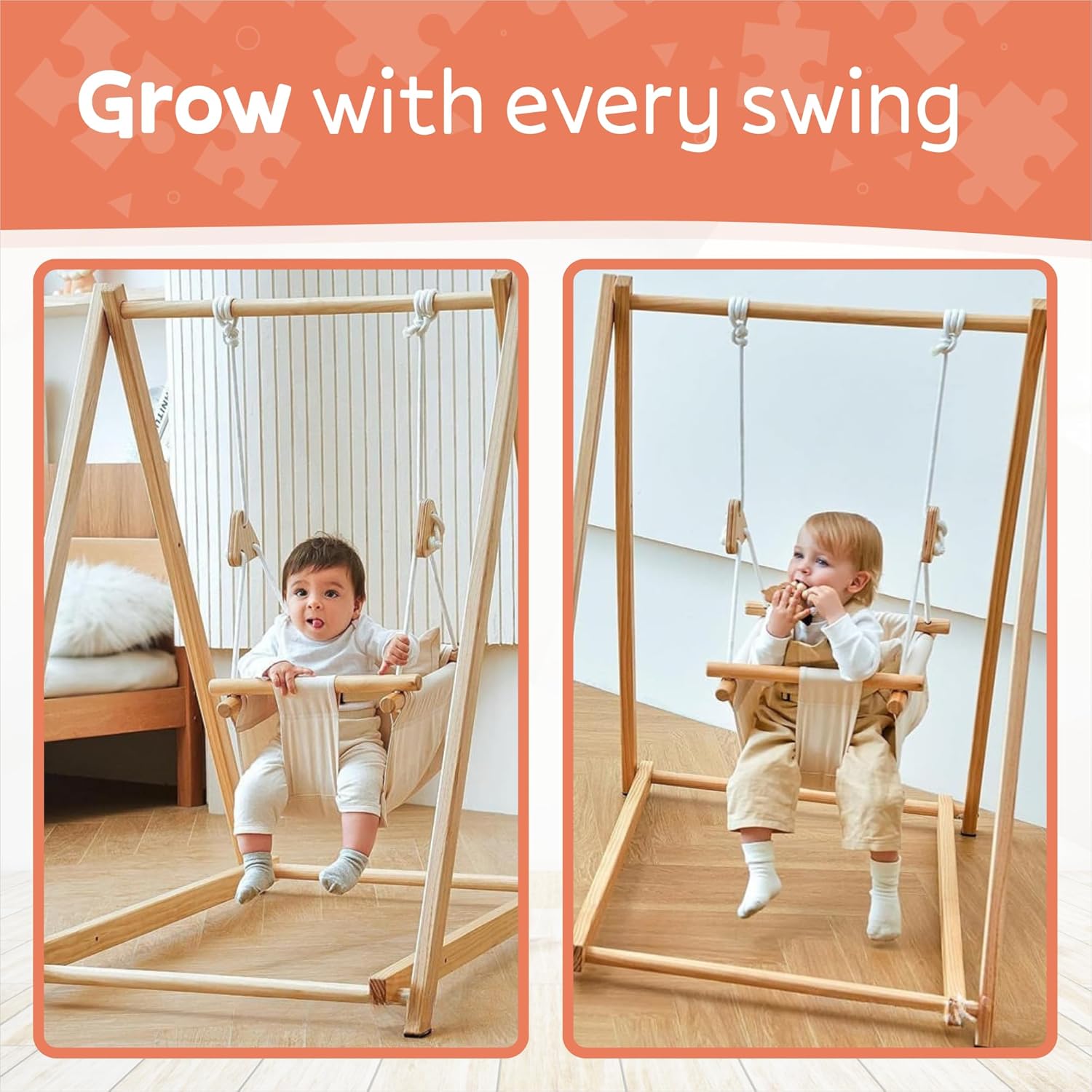 Apportez à votre bébé un mélange parfait de divertissement et de relaxation grâce à cette balançoire en bois Montessori pliable. Conçue pour offrir une expérience ludique et apaisante, elle est idéale pour stimuler les sens tout en procurant un sentiment de sécurité et de confort. Que ce soit pour une utilisation à l’intérieur ou à l’extérieur, cette balançoire s’adapte à toutes vos envies et à celles de votre enfant.