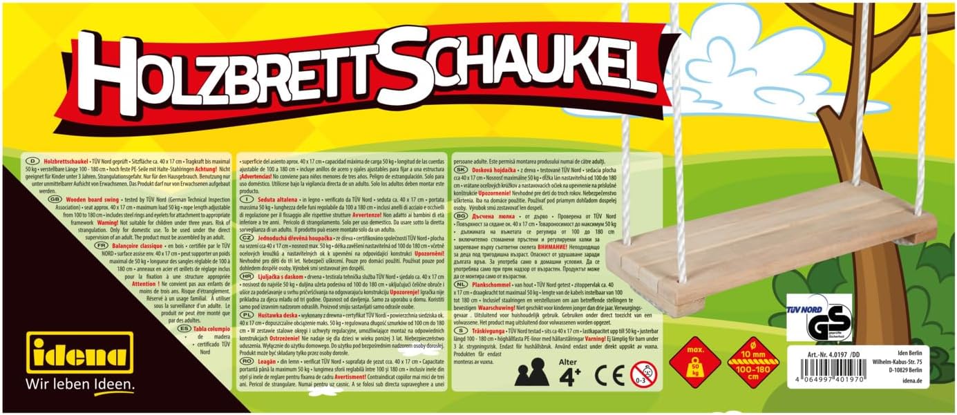 Fabriquée en bois dur naturel, cette balançoire allie robustesse et esthétique. Les dimensions compactes de la planche (40 x 17 x 2,5 cm) offrent un espace idéal pour que votre enfant puisse se balancer en toute sécurité, que ce soit en position assise ou debout. Avec une capacité de charge allant jusqu’à 50 kg, elle s’adapte parfaitement à la croissance de votre enfant tout en garantissant une utilisation prolongée.