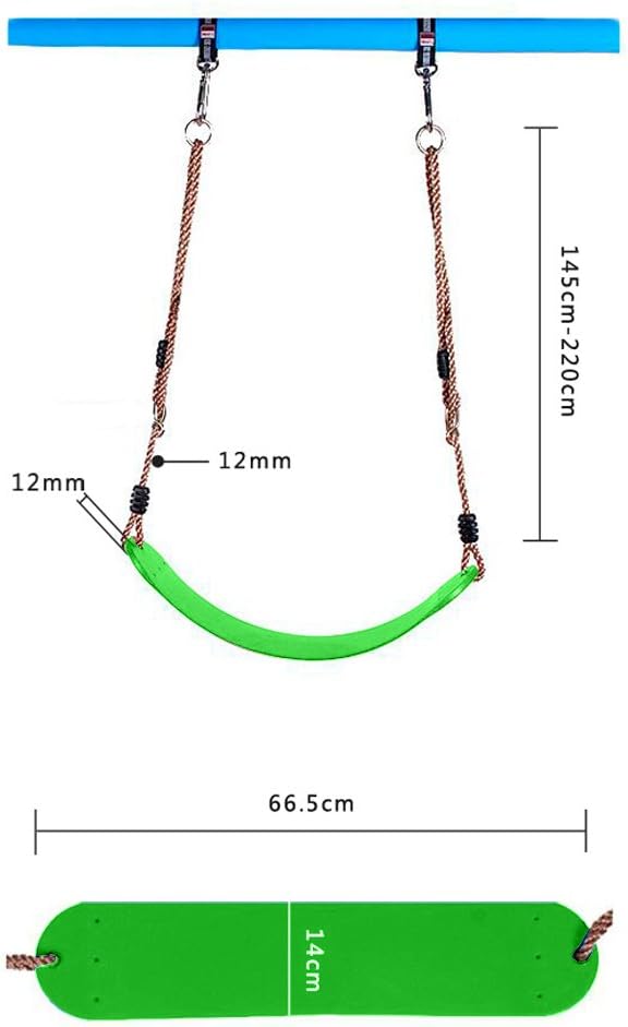 La balançoire est équipée de cordes en polypropylène solides et durables, réglables de 145 cm à 220 cm. Ce système ajustable permet une installation adaptée à différentes hauteurs, que ce soit dans un jardin, une salle de jeux ou sur un cadre spécialement conçu. Les cordes offrent une excellente résistance à l’usure, garantissant une utilisation prolongée sans compromis sur la sécurité.