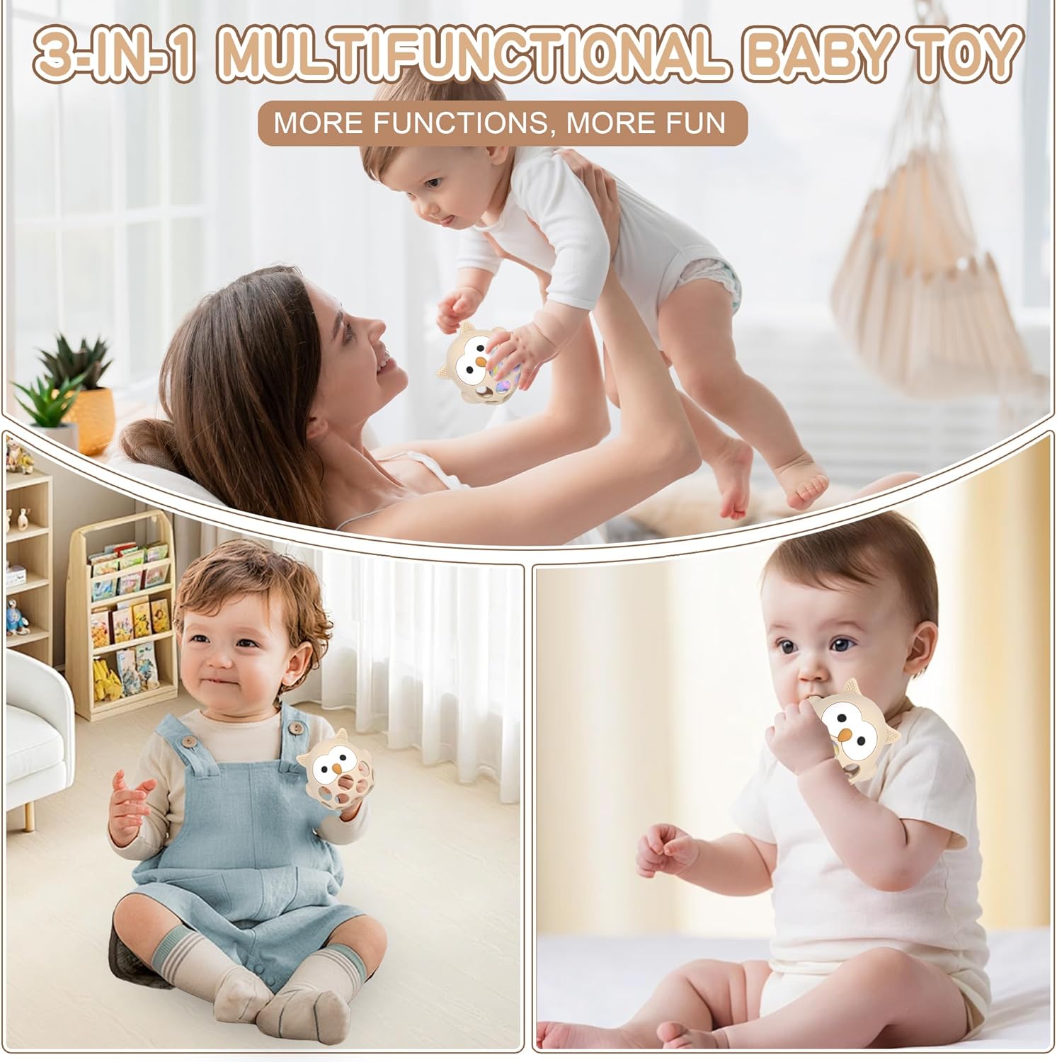 - Stimulation multisensorielle : Clochette intégrée pour éveiller l’ouïe et conception creuse pour stimuler le toucher.