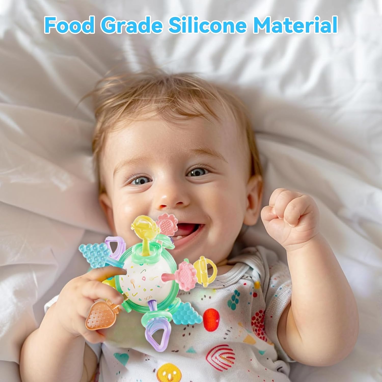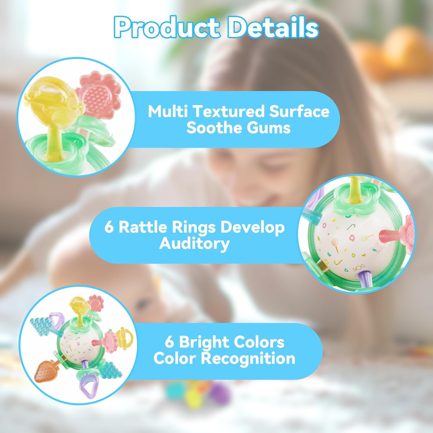 Stimulez l’éveil sensoriel et soulagez la dentition de votre bébé avec cette balle Montessori facile à saisir, colorée et conçue en matériau sûr et doux.