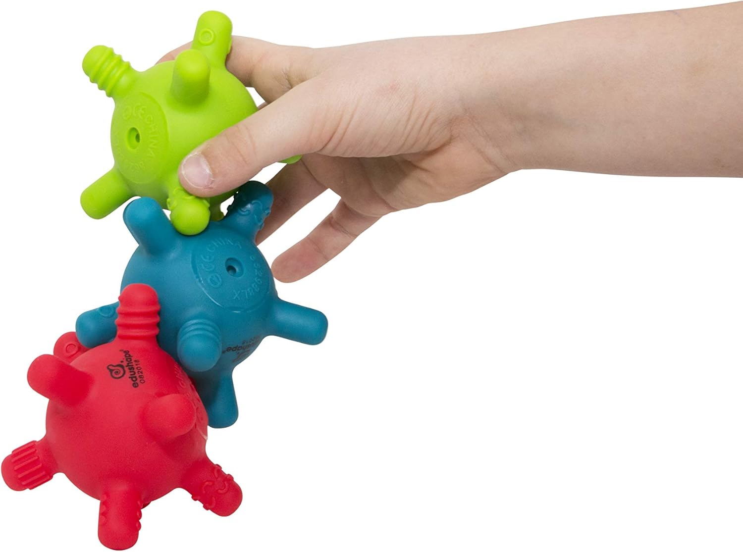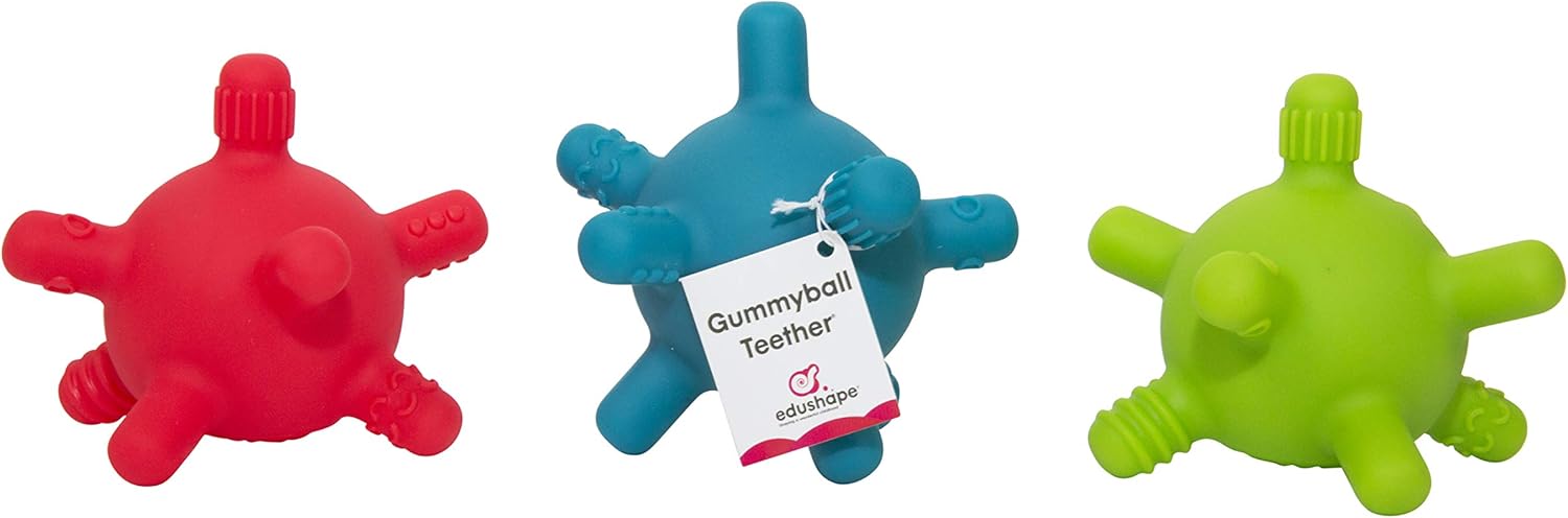 Balles très pratiques lors des poussées dentaires. Bébé peut les tenir très facilement avec ses petites mains et les faire tourner pour les machouiller. La texture est parfaite, souple mais resiste un peu sous les gencives pour soulager. Pas d'odeur désagréable à signaler. Le lot de 3 est pratique pour en avoir toujours une sous la main. Je recommande