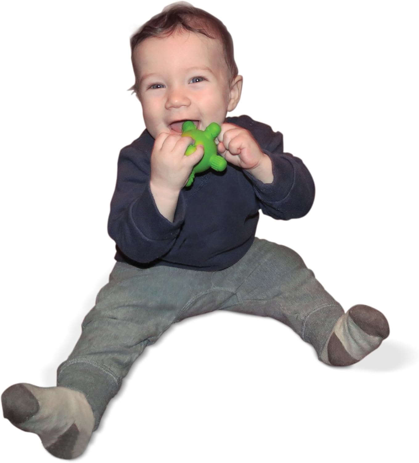 Ces jouets en silicone sont super pour soulager les dents et faire travailler la dextérité des petits. Mes filles de 7 mois jouent beaucoup avec et la crèche semble avoir le même fournisseur que nous ^^