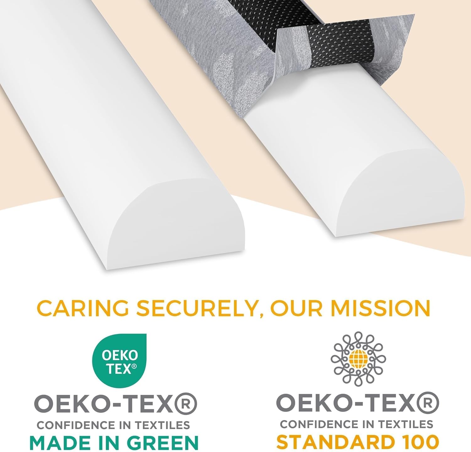 Cette barrière se distingue par sa rigueur dans le choix des matériaux et sa qualité irréprochable. Fabriquée en mousse haute densité 25D, elle offre un support optimal tout en douceur. Les points de silicone antidérapants, situés sur le dessus et le dessous, assurent une stabilité maximale. La fermeture éclair robuste n°5 est dissimulée pour une durabilité accrue et un contact agréable au toucher.