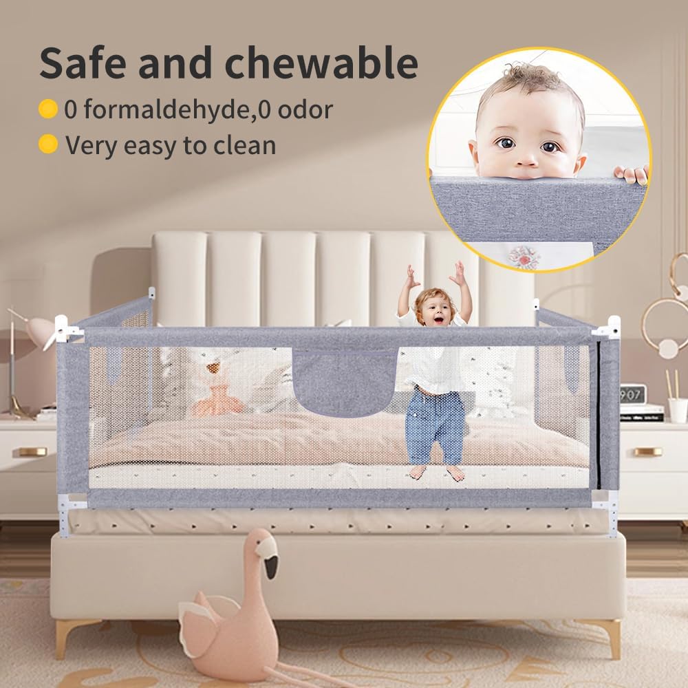 Adoptez cette barrière de lit amovible et réglable, conçue pour une sécurité optimale, une installation facile et une adaptation parfaite à toutes les épaisseurs de matelas.