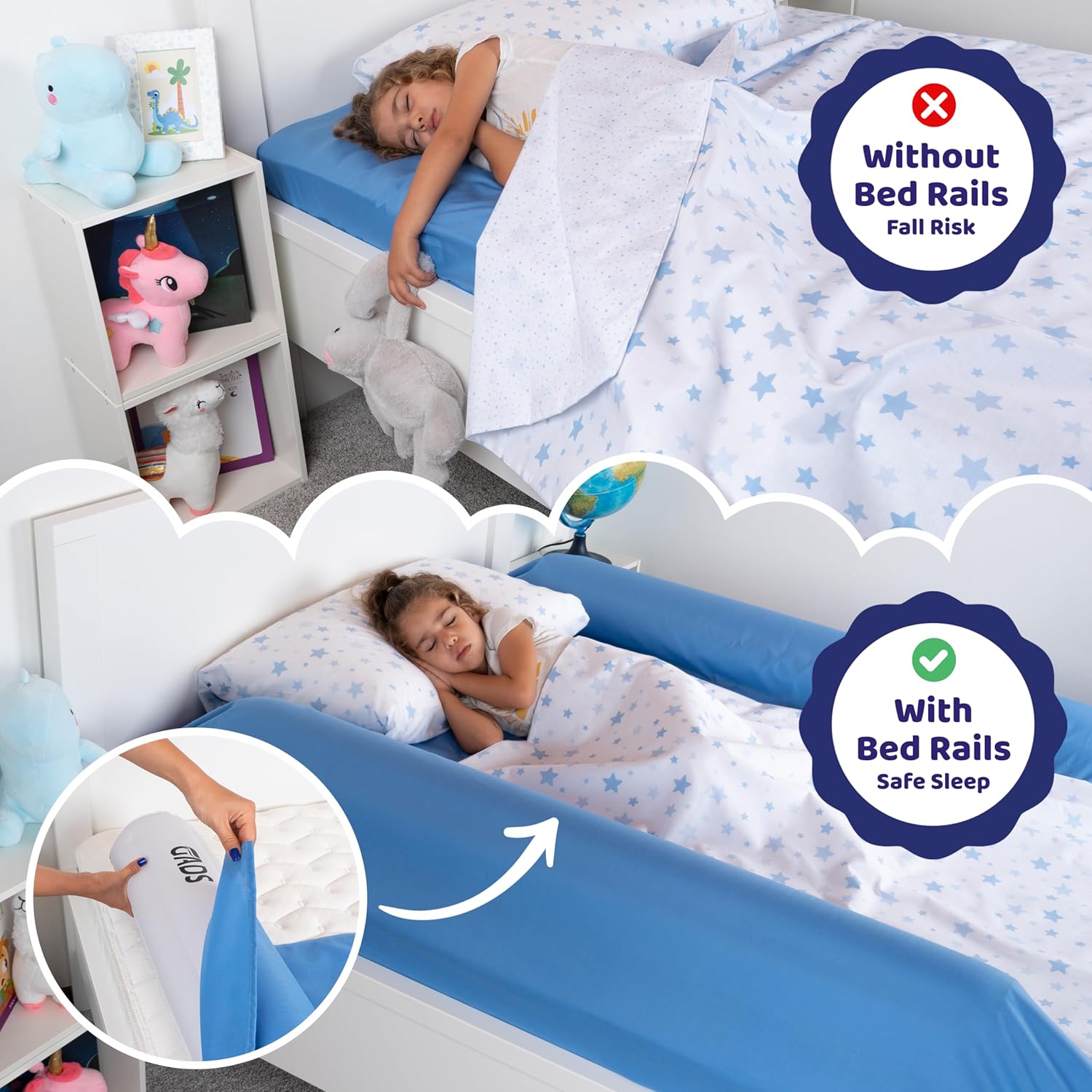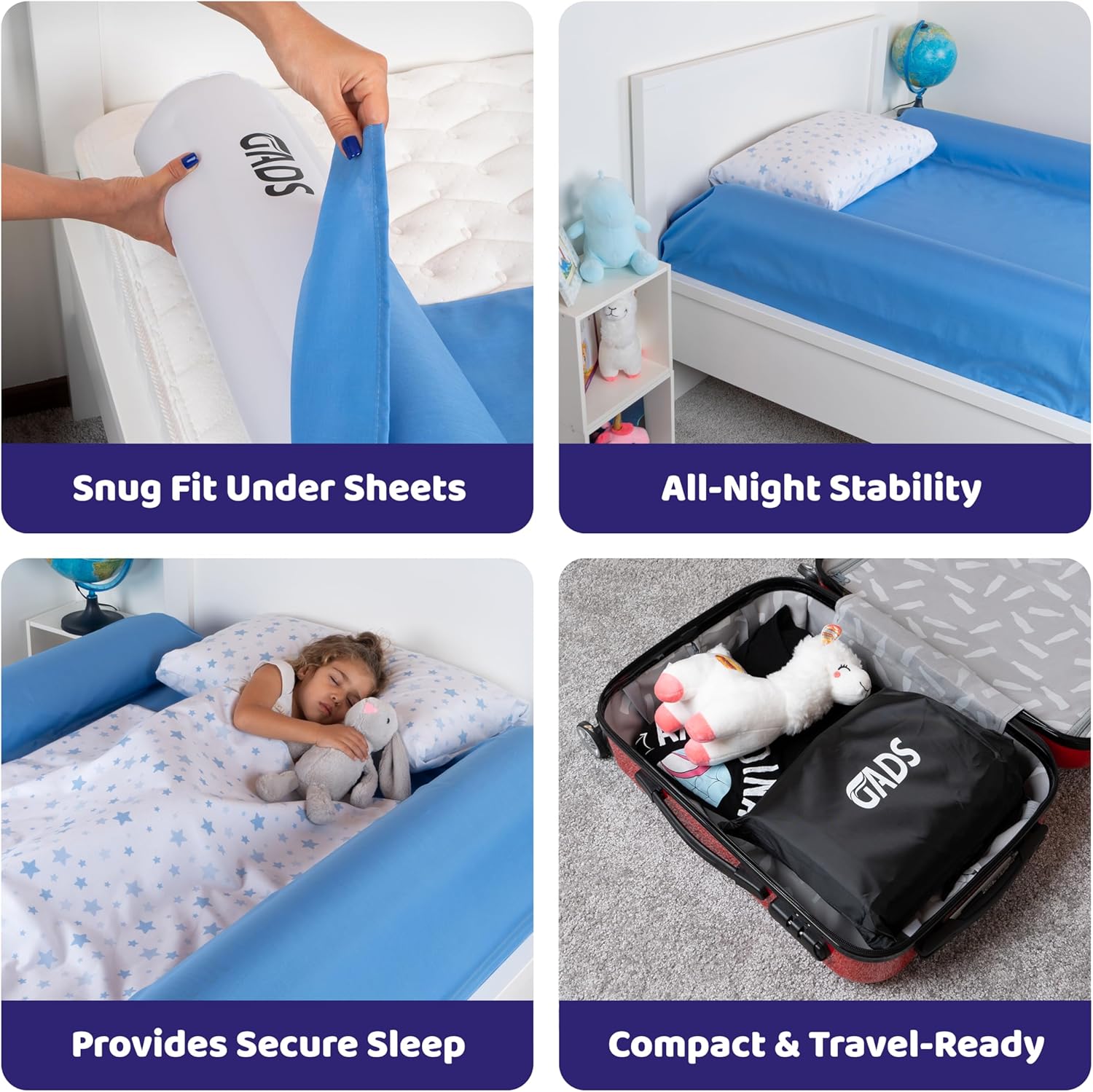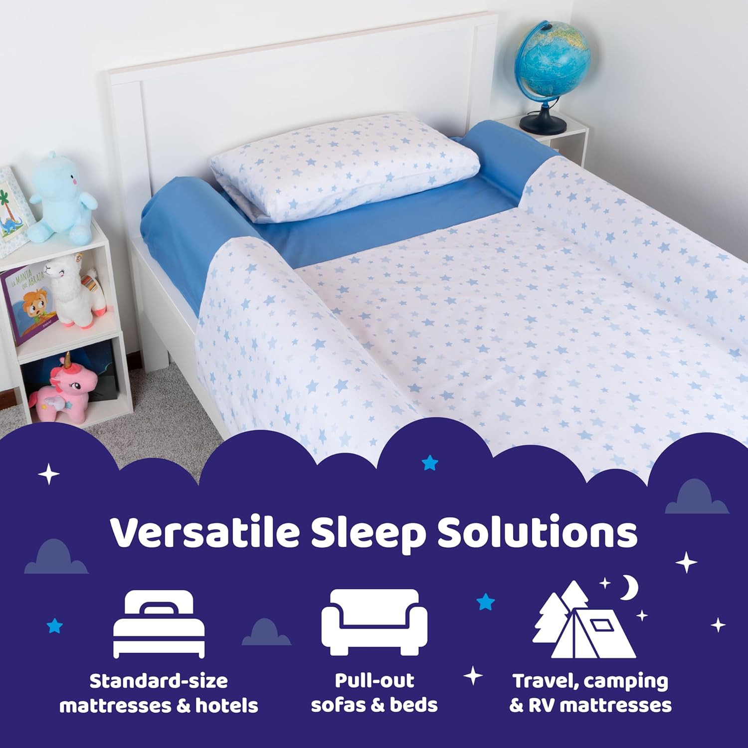 Protégez le sommeil de votre enfant avec cette barrière de lit gonflable amovible, facile à installer, sécurisée, compacte et idéale pour tous les types de lits.