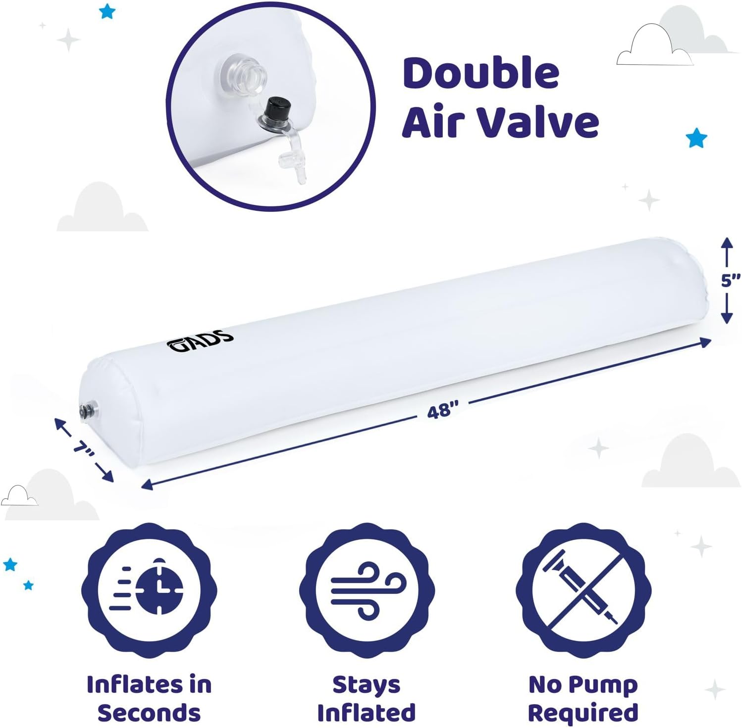 La barrière de lit gonflable amovible est conçue pour simplifier votre quotidien. Grâce à sa valve à double air, le gonflage se fait en quelques secondes, vous offrant une installation sans effort. Une fois en place, elle reste parfaitement gonflée tout au long de la nuit, garantissant sécurité et sérénité. Oubliez les montages complexes : cette barrière combine praticité et efficacité en un clin d’œil.