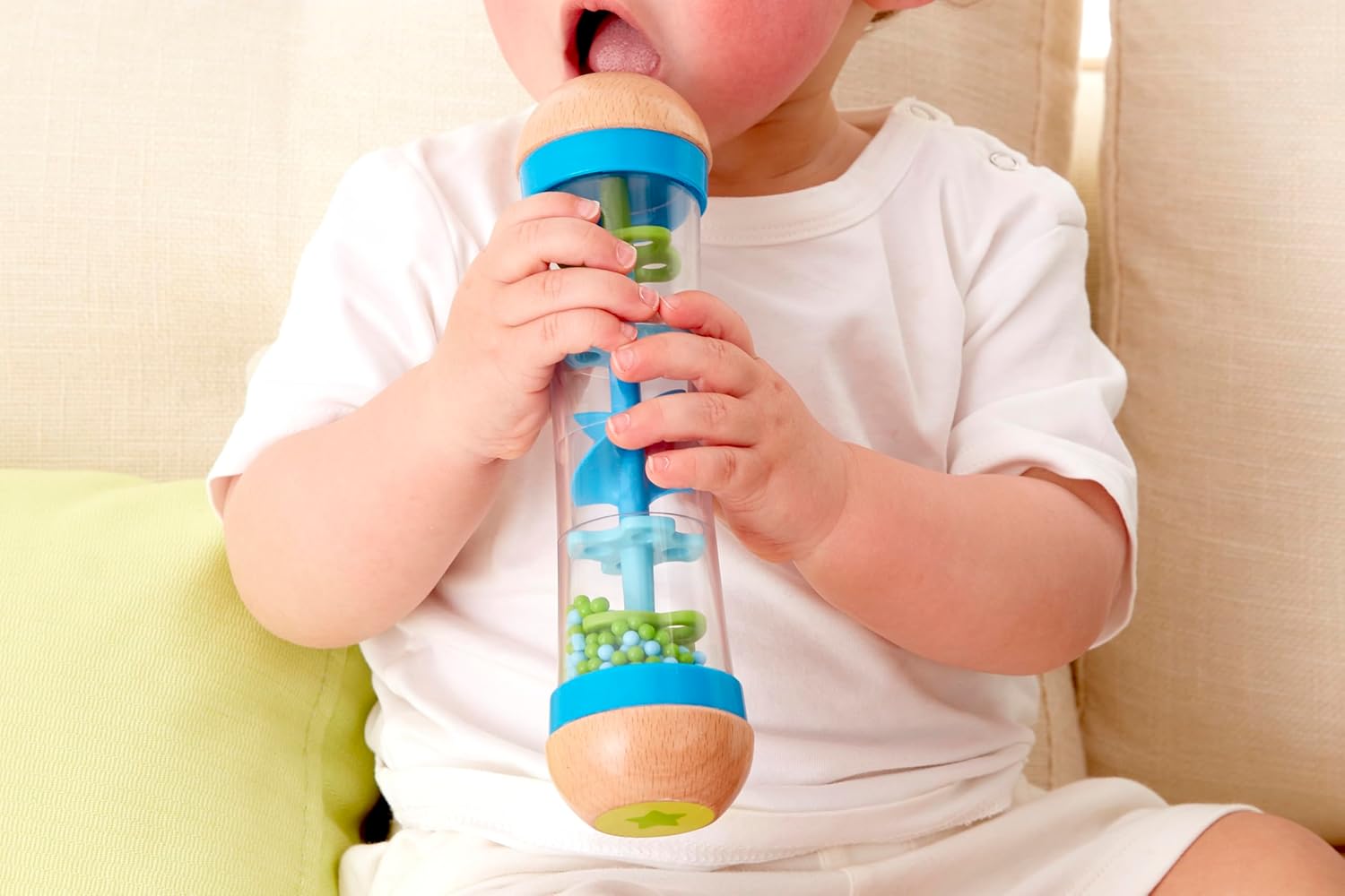 A lovely first baby sensory toy. Durable and sturdy, easy for an older baby to hold and shake. I'm giving 4 stars as I don't quite get the rain part but I would absolutely buy this toy again.