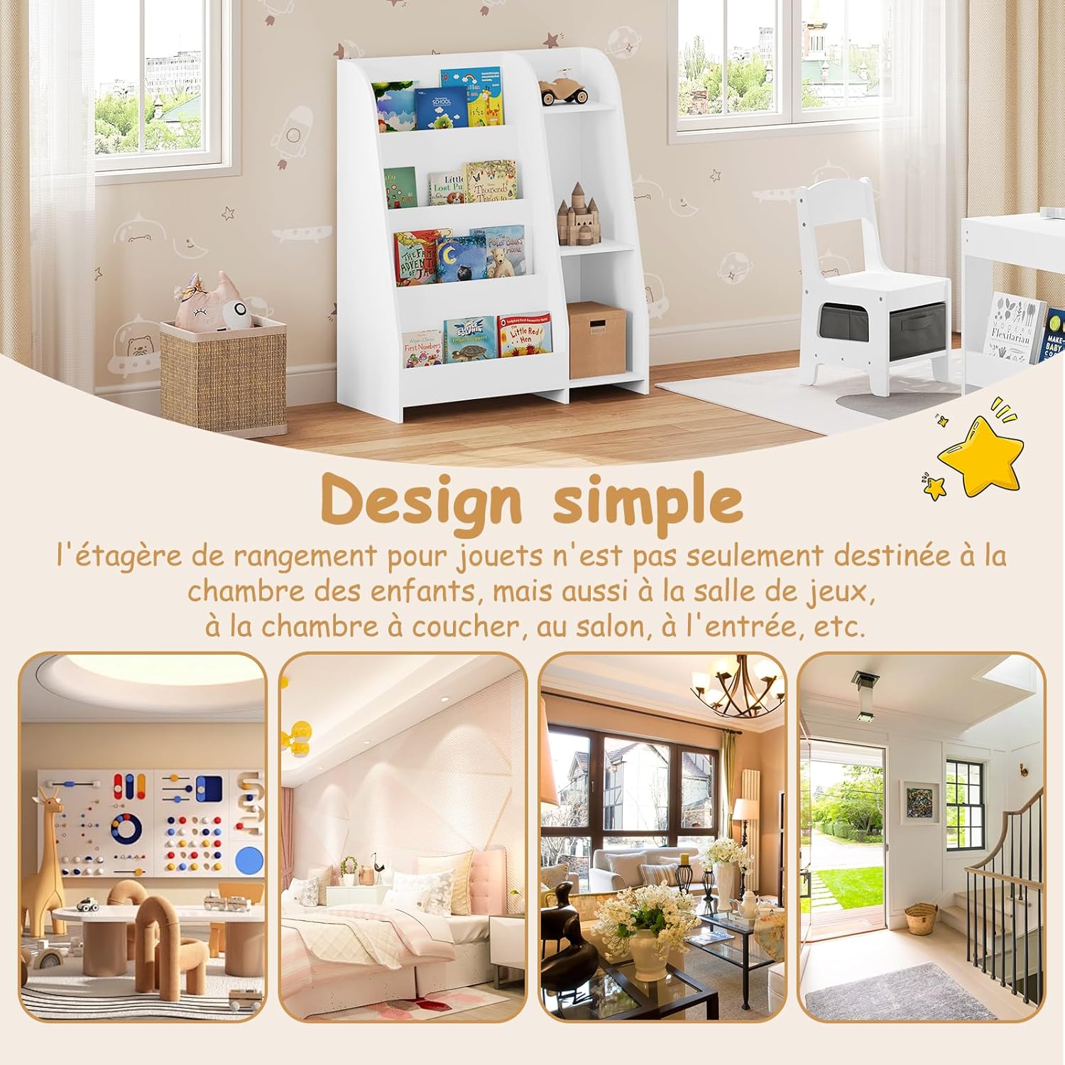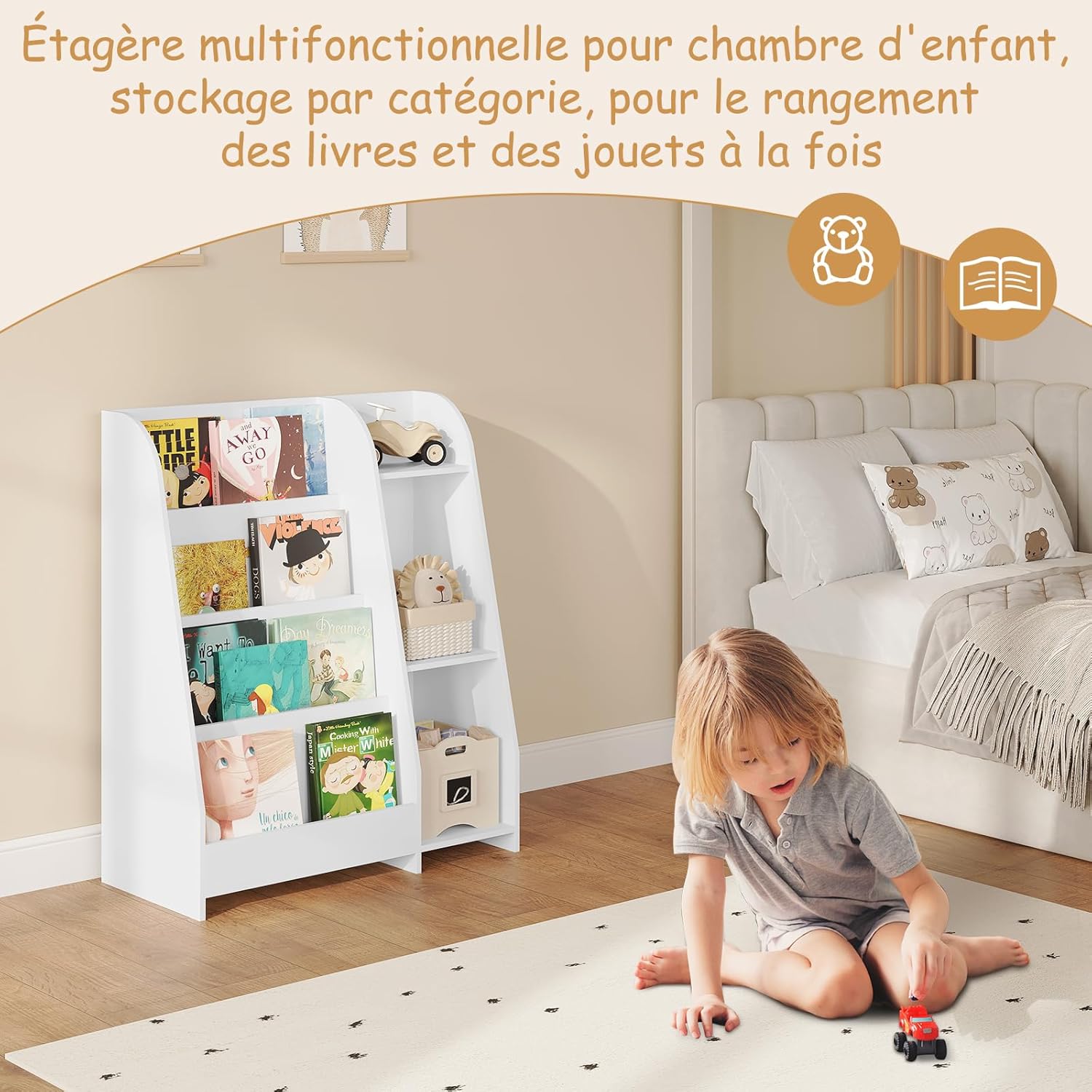 • Utilisation : bibliothèque, étagère à jouets, meuble d’appoint