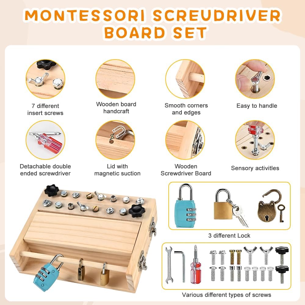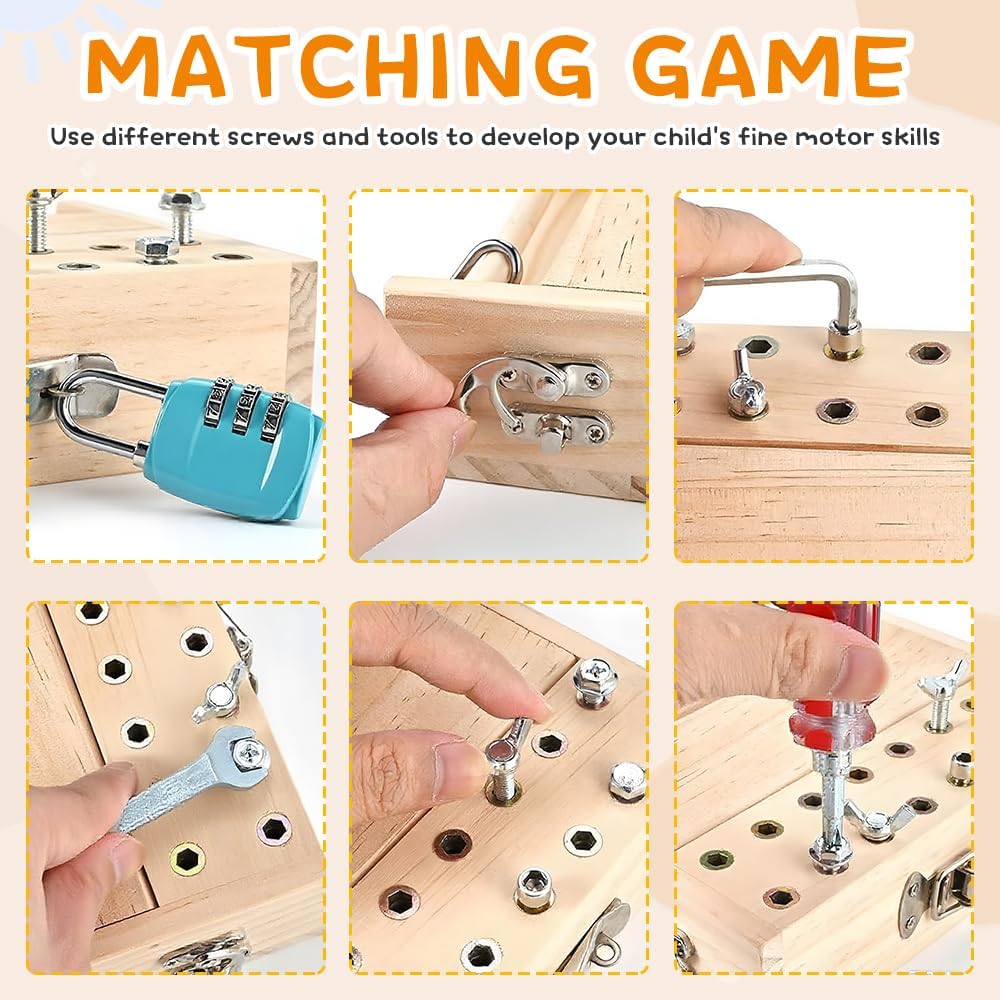 Offrez à votre enfant de 3 ans une boîte à outils Montessori ludique et éducative, parfaite pour développer motricité fine, logique et autonomie grâce à des outils adaptés en toute sécurité.