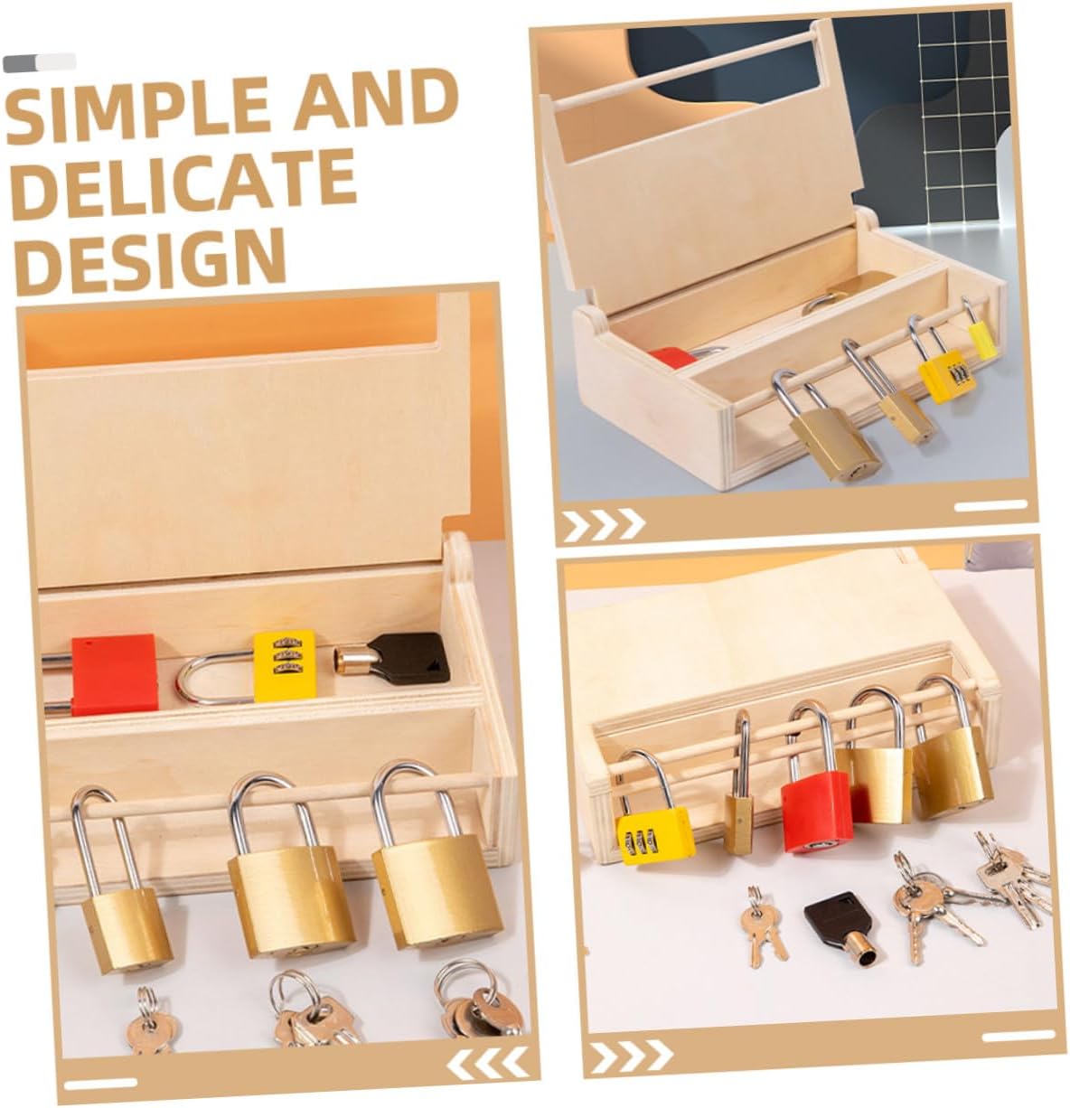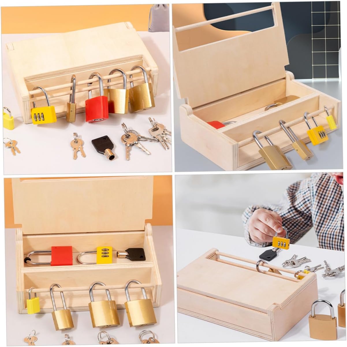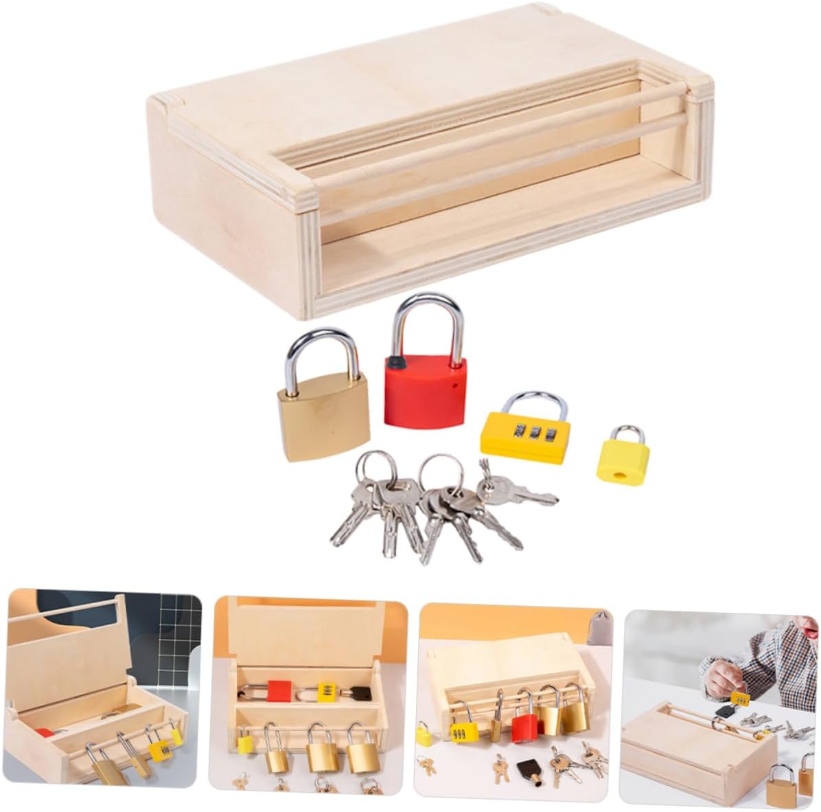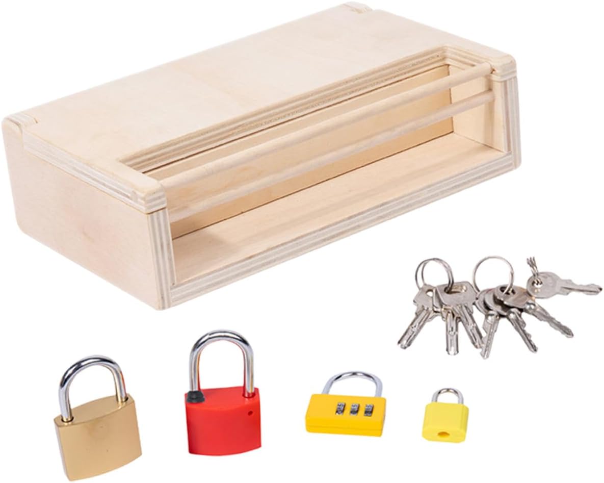 Boostez l’éveil et la coordination de votre enfant grâce à cette boîte à serrures Montessori en bois, un jouet éducatif alliant apprentissage des formes, des couleurs et manipulation des clés et serrures, le tout dans une conception sûre et soignée.
