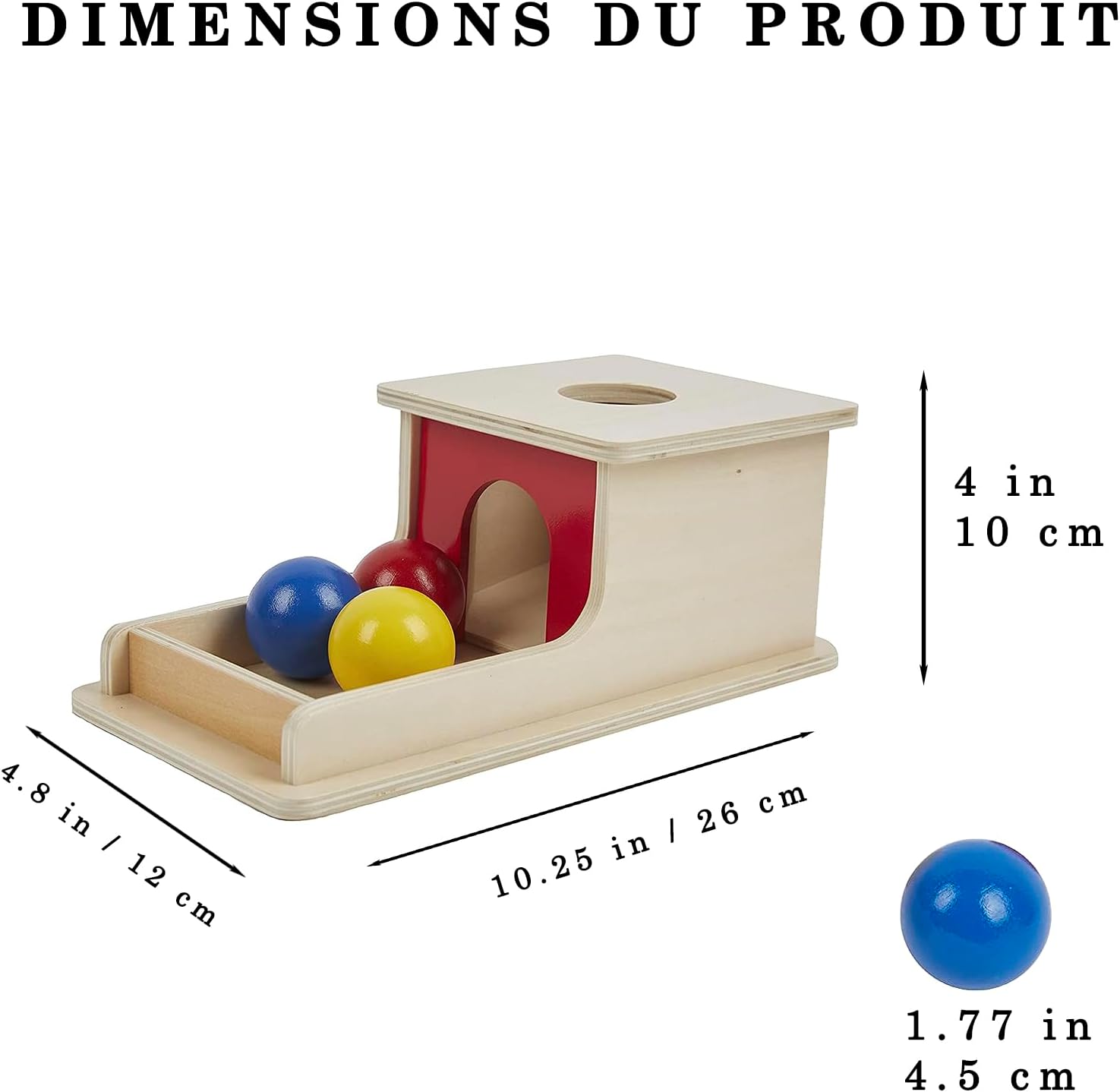 Un jouet de qualité, jolies couleurs et résistant. On a juste rajouté un petit morceau de tissus dans la boîte pour amortir un peu le bruit quand les balles tombent dedans.