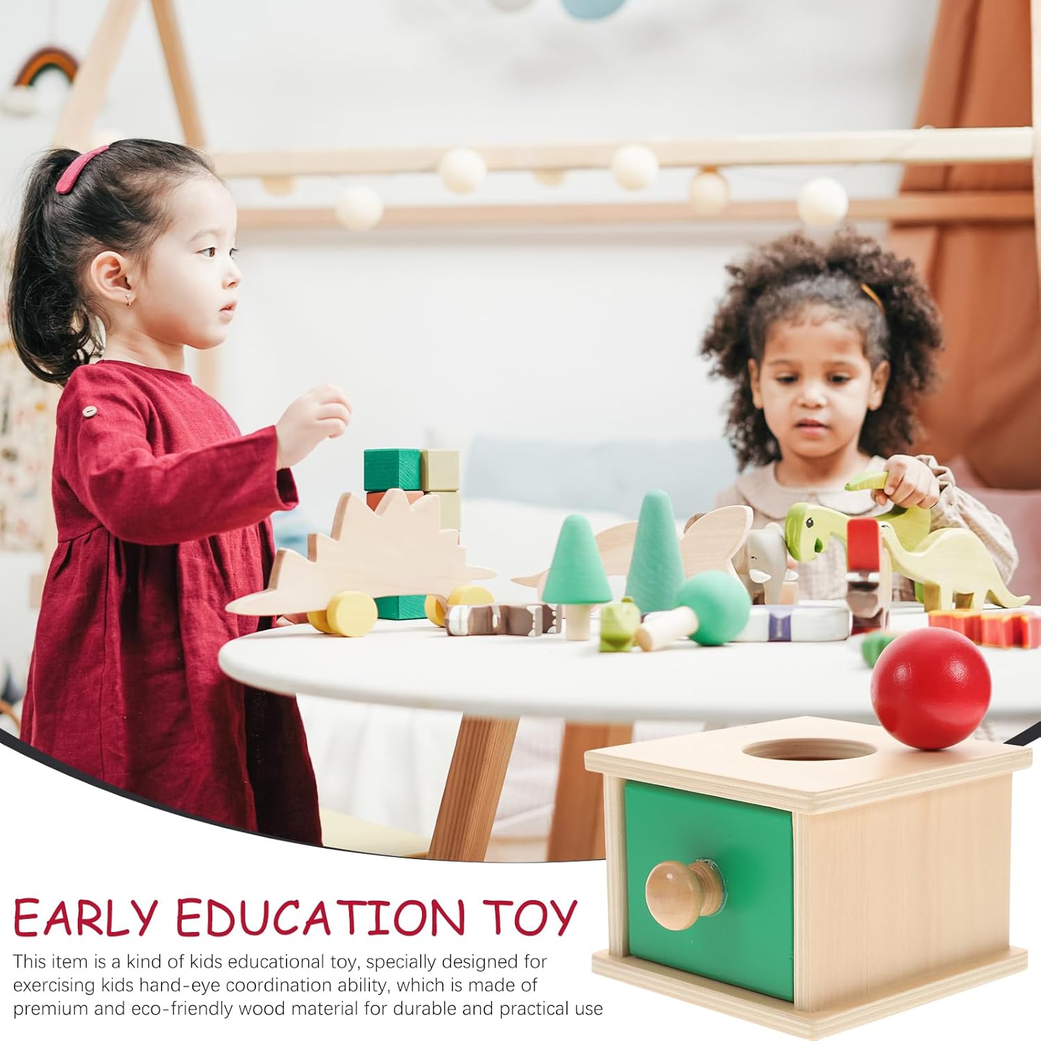 Découvrez la boîte de permanence Montessori en bois, un jouet éducatif idéal pour développer la motricité fine, la coordination œil-main et apprendre la permanence de l’objet dès le plus jeune âge.