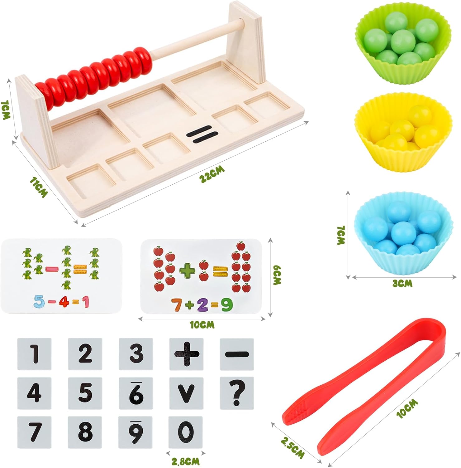 Un jeu en bois pour apprendre aux enfants à compter et le calcul tout en s'amusant. Les couleurs sont vives, le bois bien lisse avec de belles finitions. L'enfant pour compter peut utiliser le boulier ou les billes de couleurs. Le jeu est contient des blocs de chiffres et des cartes de calcul. Une bonne idée de jeu ludique et instructive.