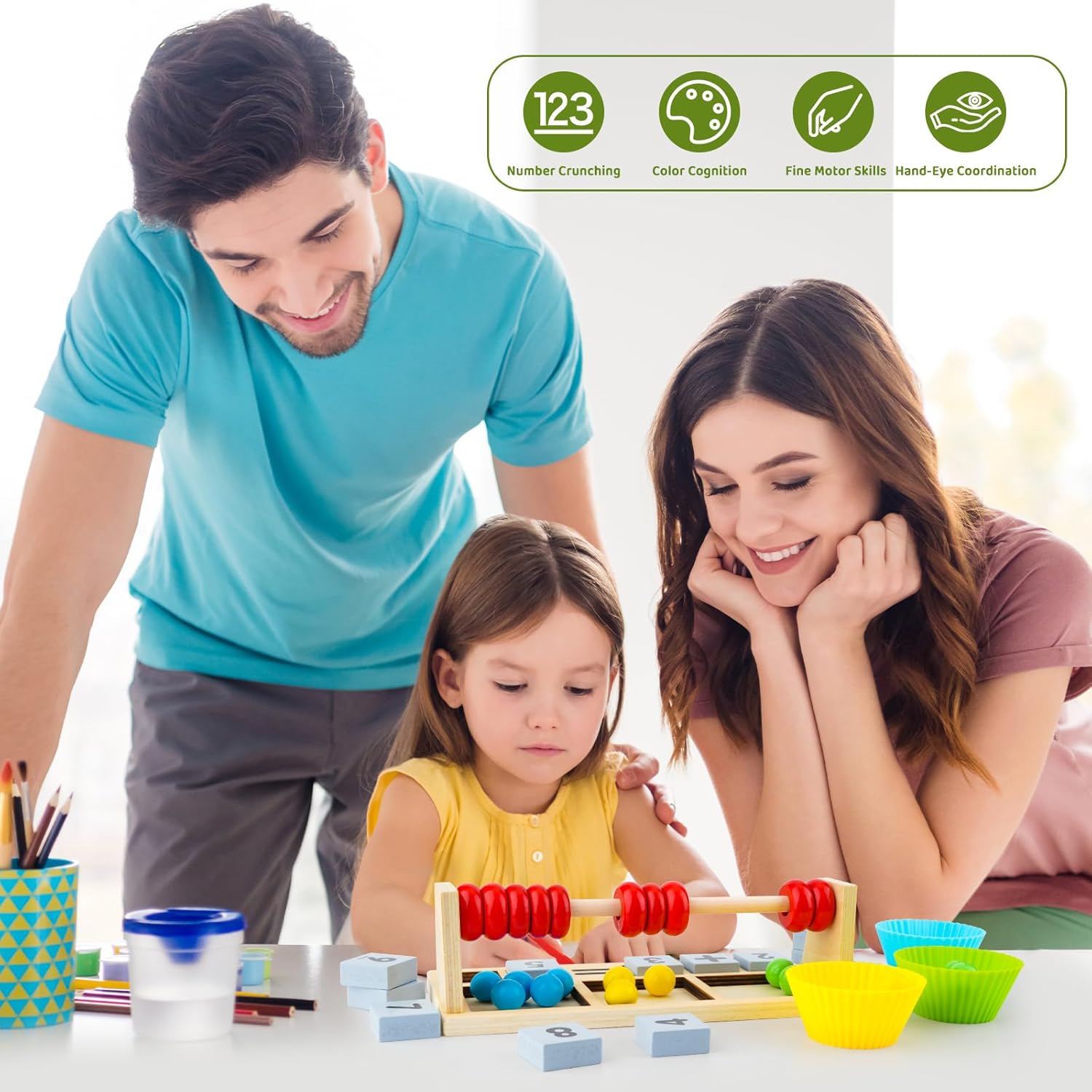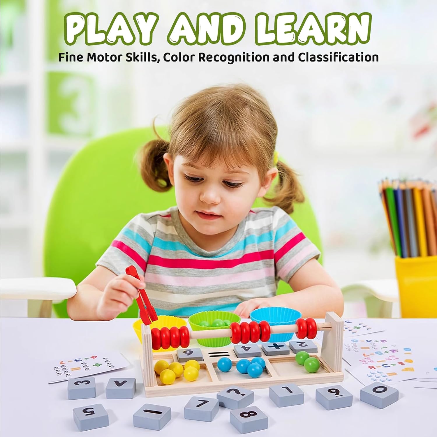 Les enfants adorant les chiffres se régaleront avec ce jeu très complet qui permet de compter et d'utiliser sa motricité fine.