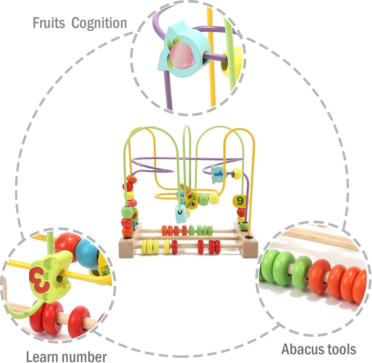Ce boulier en bois n’est pas qu’un simple jouet, c’est un véritable outil pédagogique. Les trois pistes irrégulières offrent des défis stimulants qui encouragent votre enfant à développer sa réflexion logique et ses compétences en résolution de problèmes. De plus, il peut apprendre à reconnaître les couleurs, les fruits et les chiffres tout en s’amusant. Le boulier situé à la base, composé de 16 perles colorées, renforce encore davantage les capacités d’apprentissage et la motricité fine.