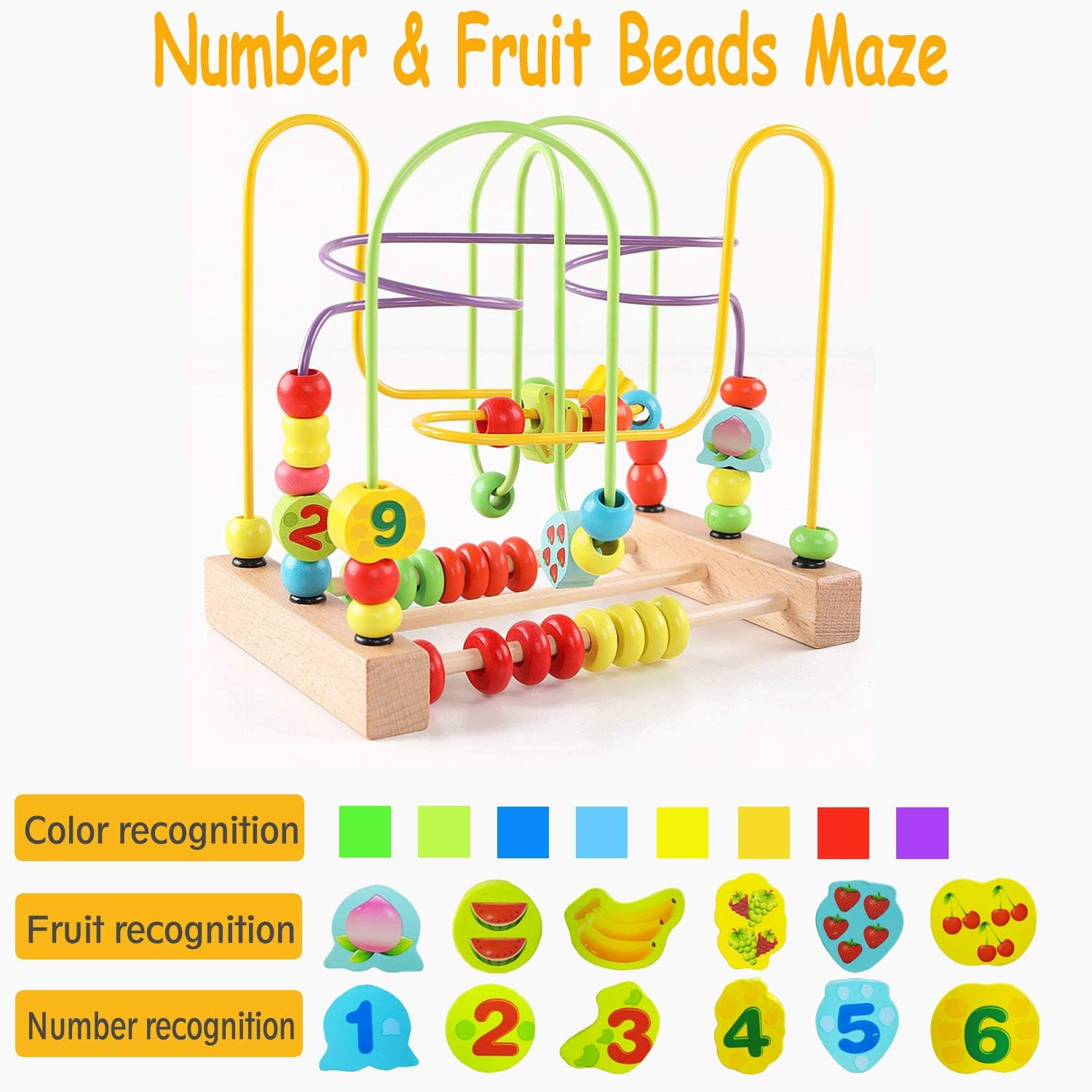 Ce labyrinthe de perles en bois séduit par son design classique et son artisanat de qualité. Il est composé de blocs en bois de hêtre naturel et de perles aux formes variées, peintes avec des colorants non toxiques. Chaque perle et chaque élément du jouet a été conçu pour offrir une expérience de jeu à la fois amusante et sécurisée. Les blocs de fruits double face permettent à votre enfant de découvrir les chiffres d’un côté et des motifs colorés de fruits de l’autre, rendant chaque partie du jeu encore plus enrichissante.