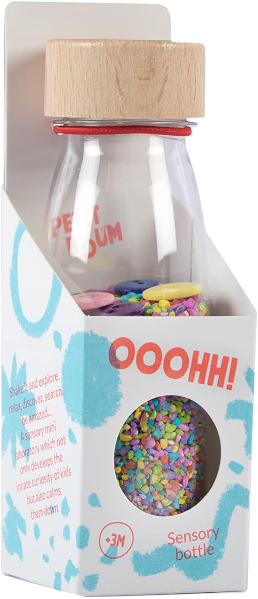 Émerveillez votre bébé dès 3 mois avec cette bouteille sensorielle multicolore, idéale pour stimuler ses sens avec des couleurs vibrantes, des sons captivants et une compatibilité avec les tables lumineuses.