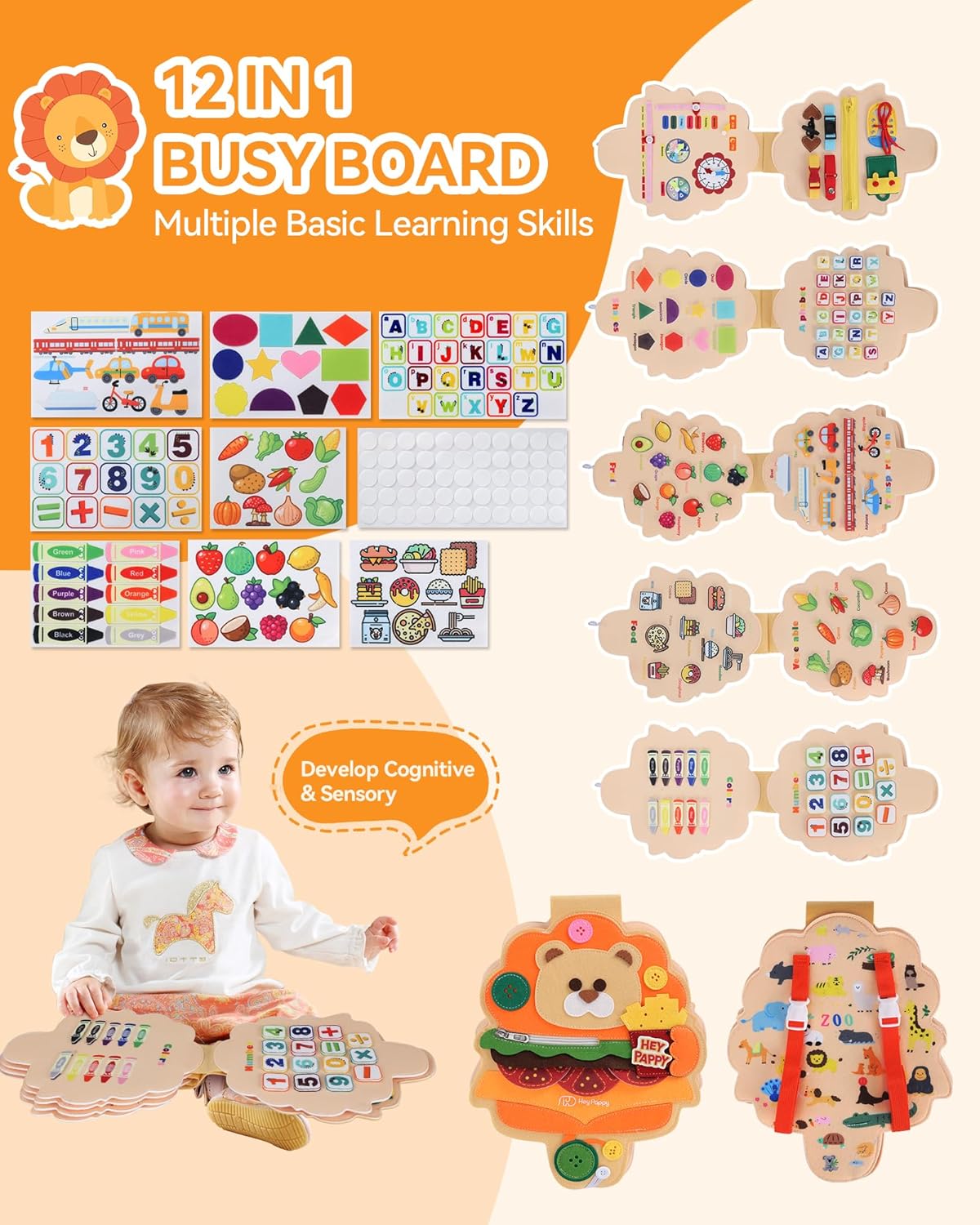 Stimulez l’éveil et la motricité de votre enfant avec ce busy board montessori 12 en 1, un jouet éducatif complet et sécurisé pour apprendre en s’amusant.