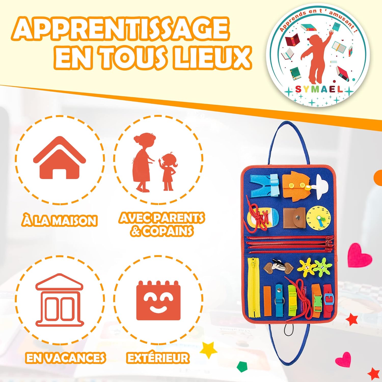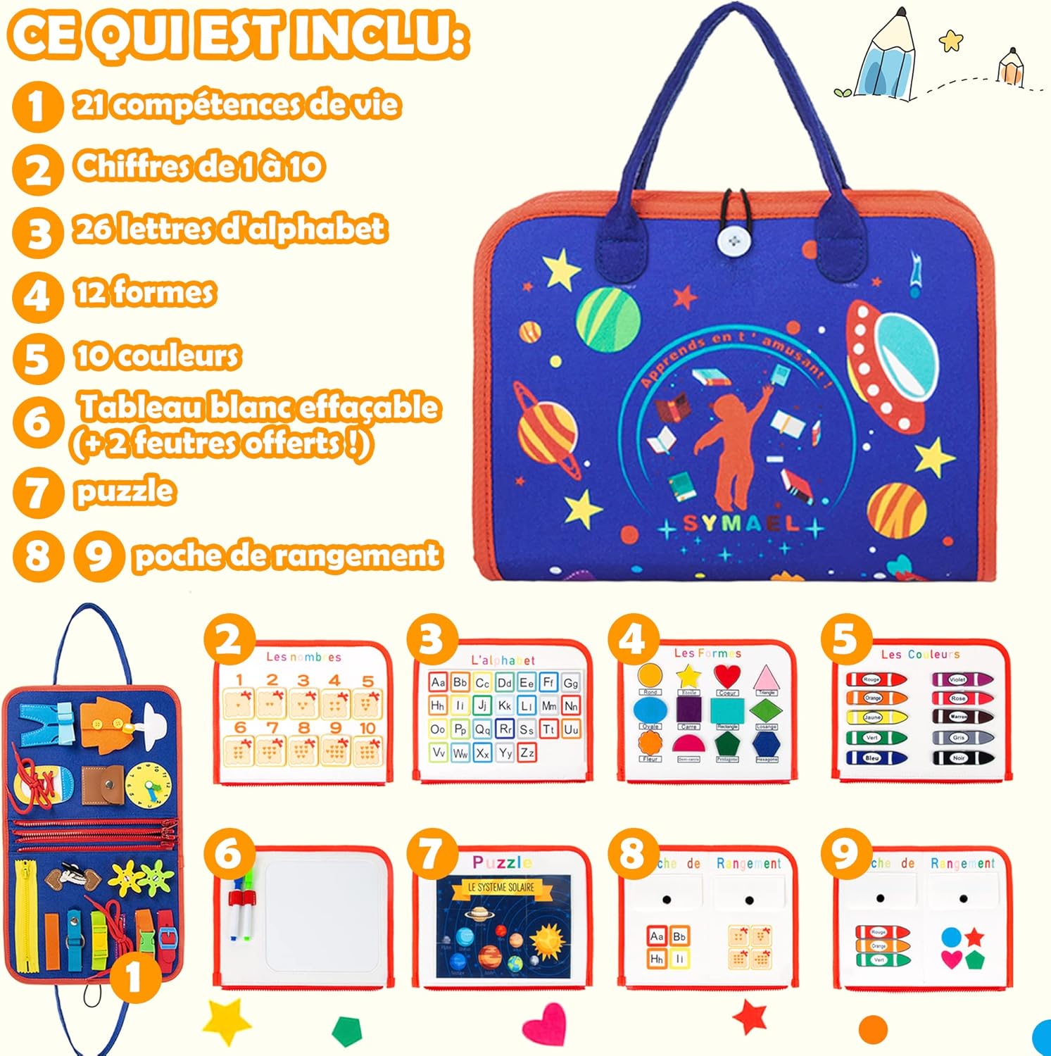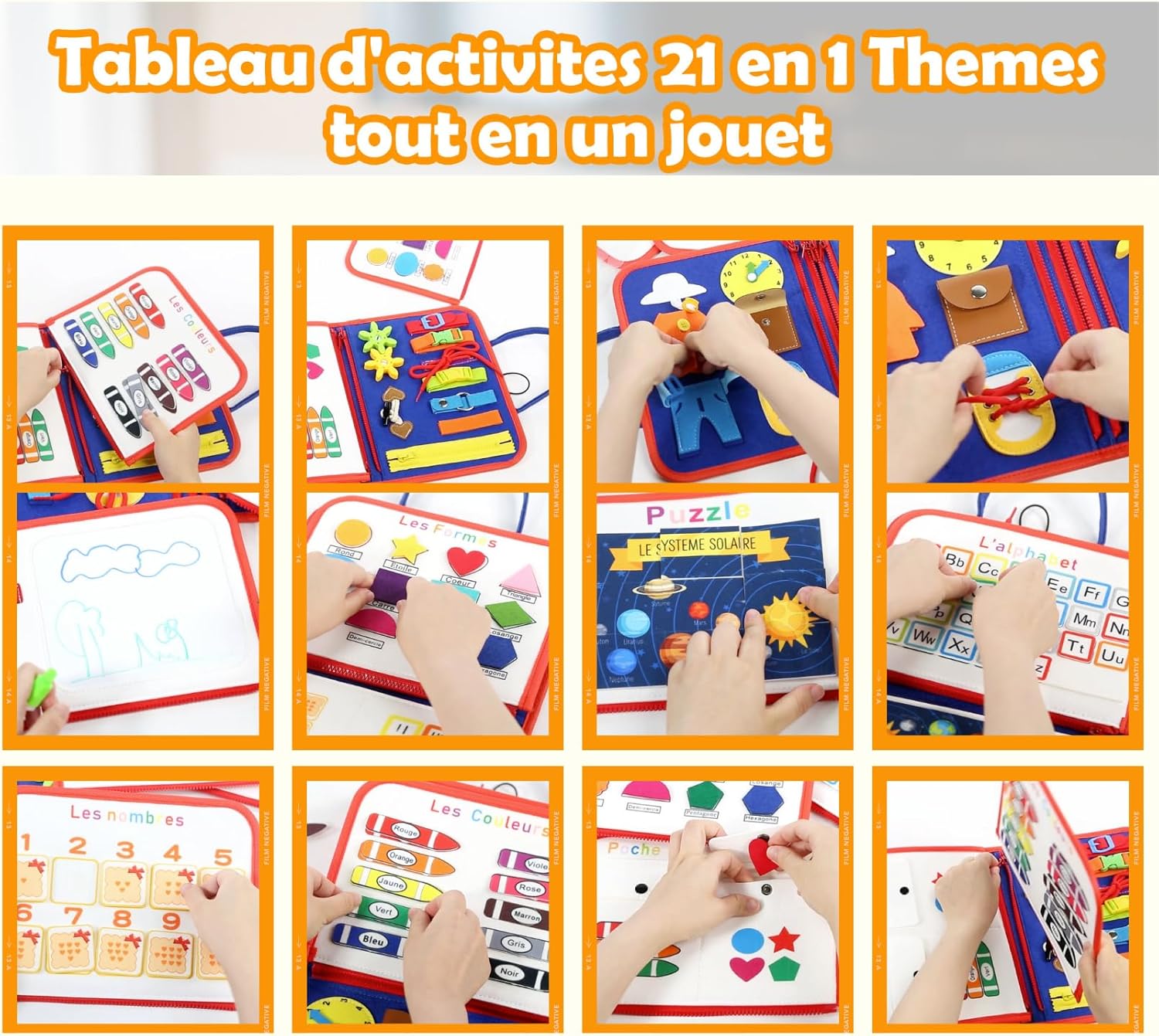 Aidez votre enfant à s’épanouir pleinement grâce à ce busy board montessori transportable, un véritable concentré d’éducation et d’amusement !