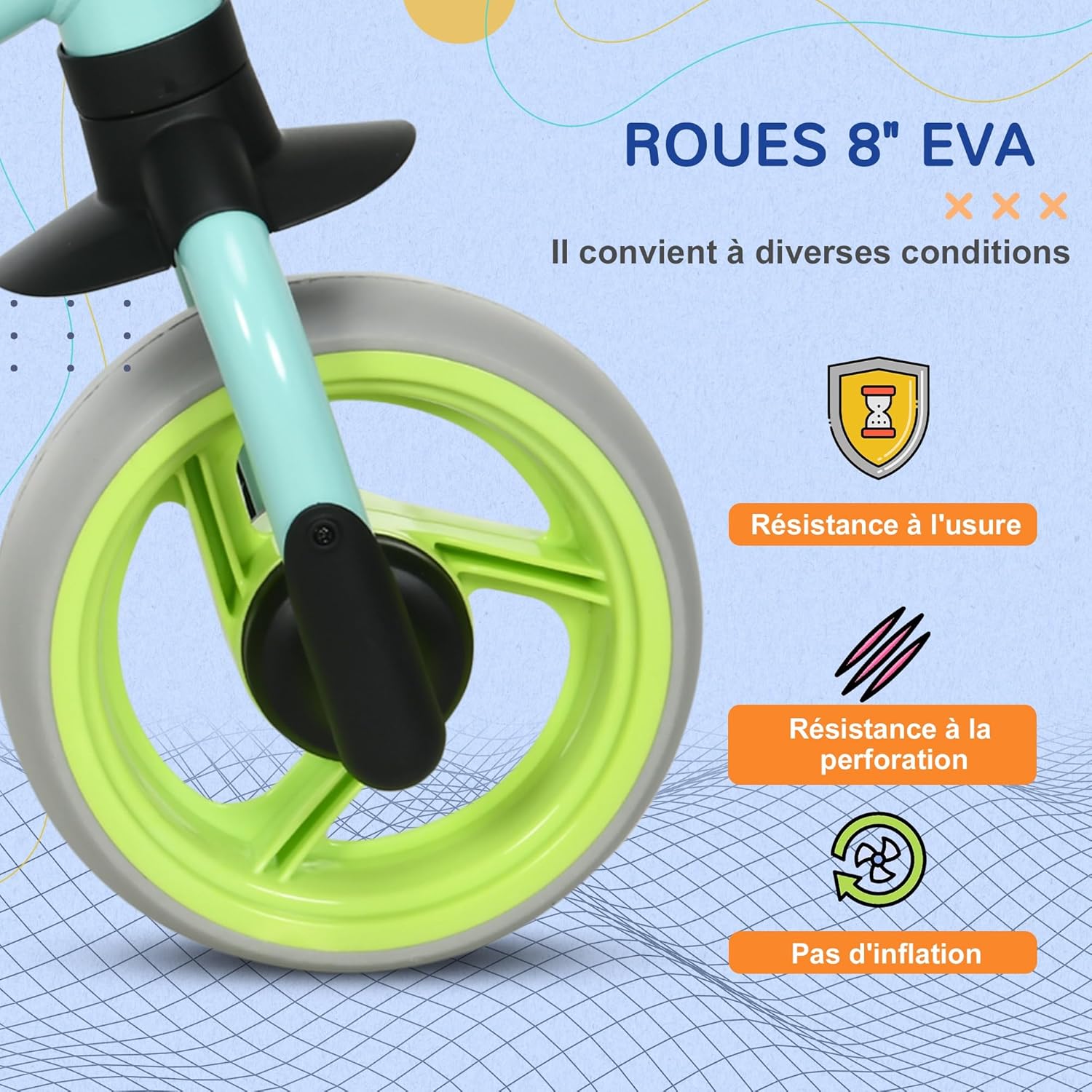 Parfait pour apprendre l'équilibre. On peut réglé la taille et est très bien pour un bébé de 1ans et demi sans soucis car la selle baissé à font le rend accessible très tôt. Il a d'ailleurs attiré l'attention d'autre bébé pendant la sorti au parc