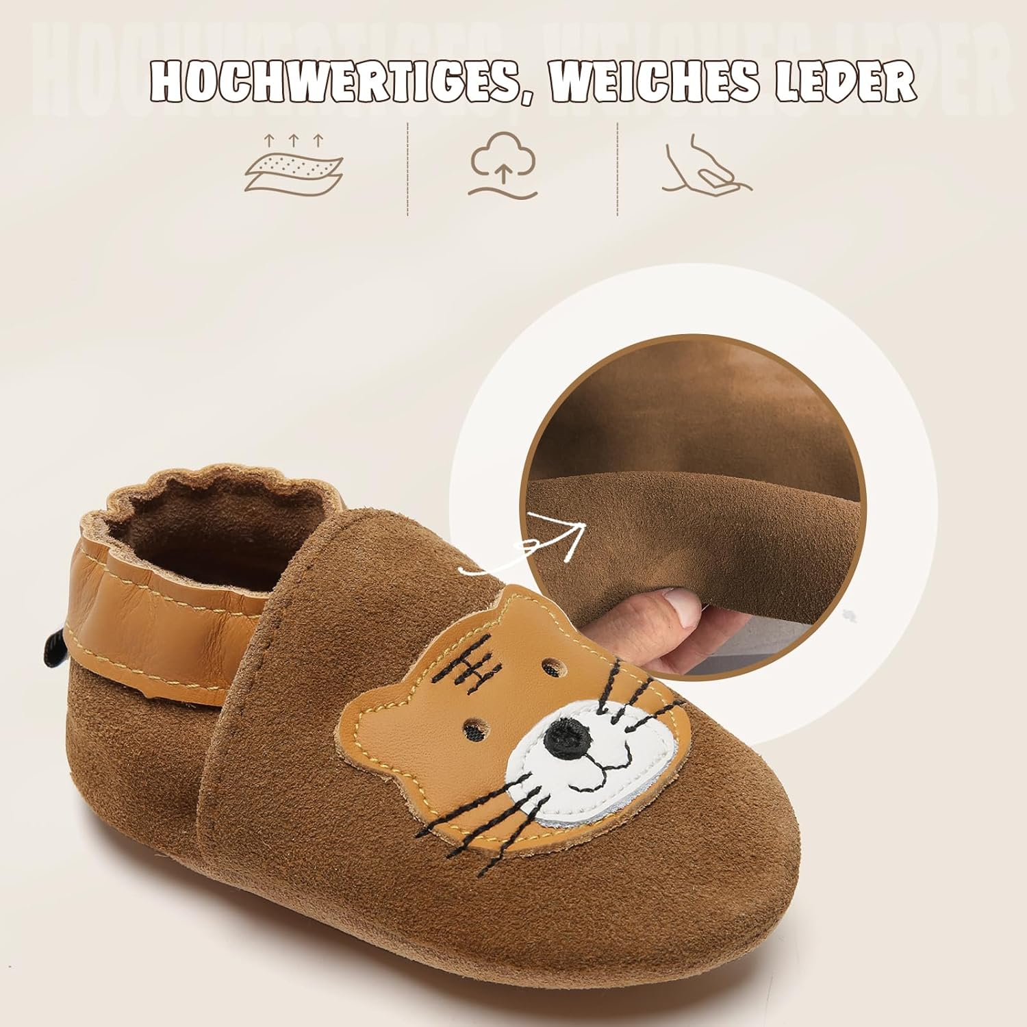 Offrez à votre bébé un confort optimal et une sécurité maximale avec ces chaussons en cuir souple antidérapants, parfaits pour ses premiers pas.