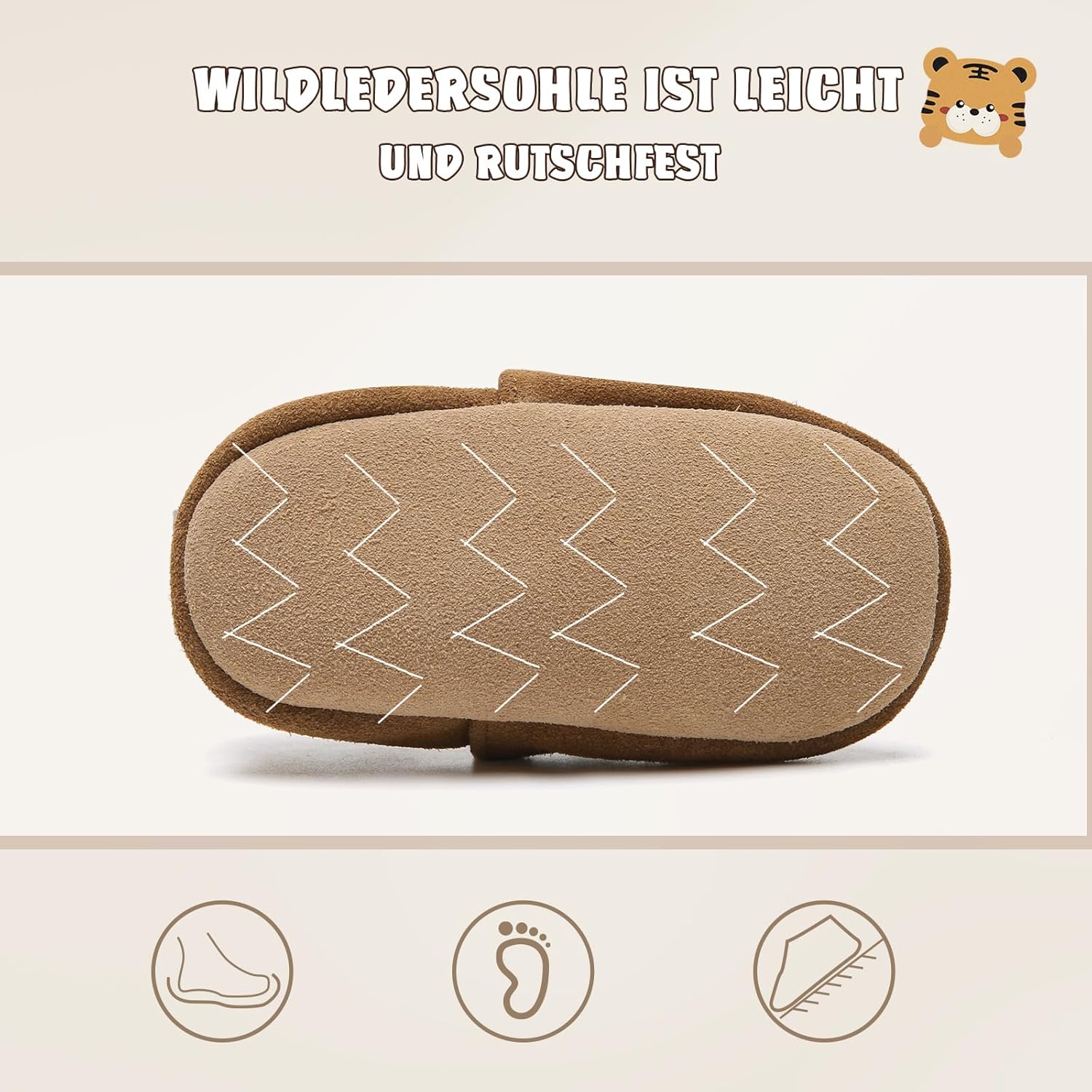 Parce que la sécurité de votre enfant est primordiale, ces chaussons sont équipés d’une semelle antidérapante. Cette caractéristique essentielle permet à votre bébé de se déplacer en toute confiance, que ce soit sur un sol carrelé, du parquet ou même des tapis. Idéal pour réduire les risques de glissades et encourager une posture stable dès les premiers pas.