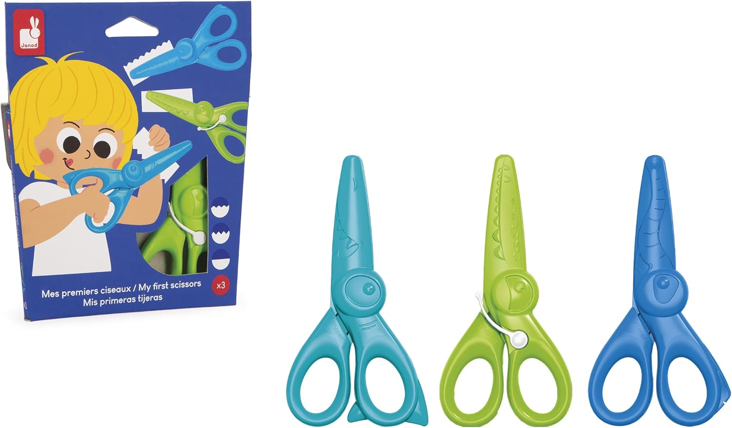 Sécurité maximale : Les lames ne coupent que le papier, parfait pour les enfants. Set complet : Trois ciseaux différents pour varier les découpes et les activités créatives. Design ludique : Couleurs vives et attrayantes qui plaisent aux enfants. Qualité Janod : Solides et agréables à manipuler, idéals pour les activités manuelles. Un set parfait pour initier les enfants aux loisirs créatifs en toute sécurité. Ludique, pratique et durable, il fait le bonheur des petits bricoleurs.