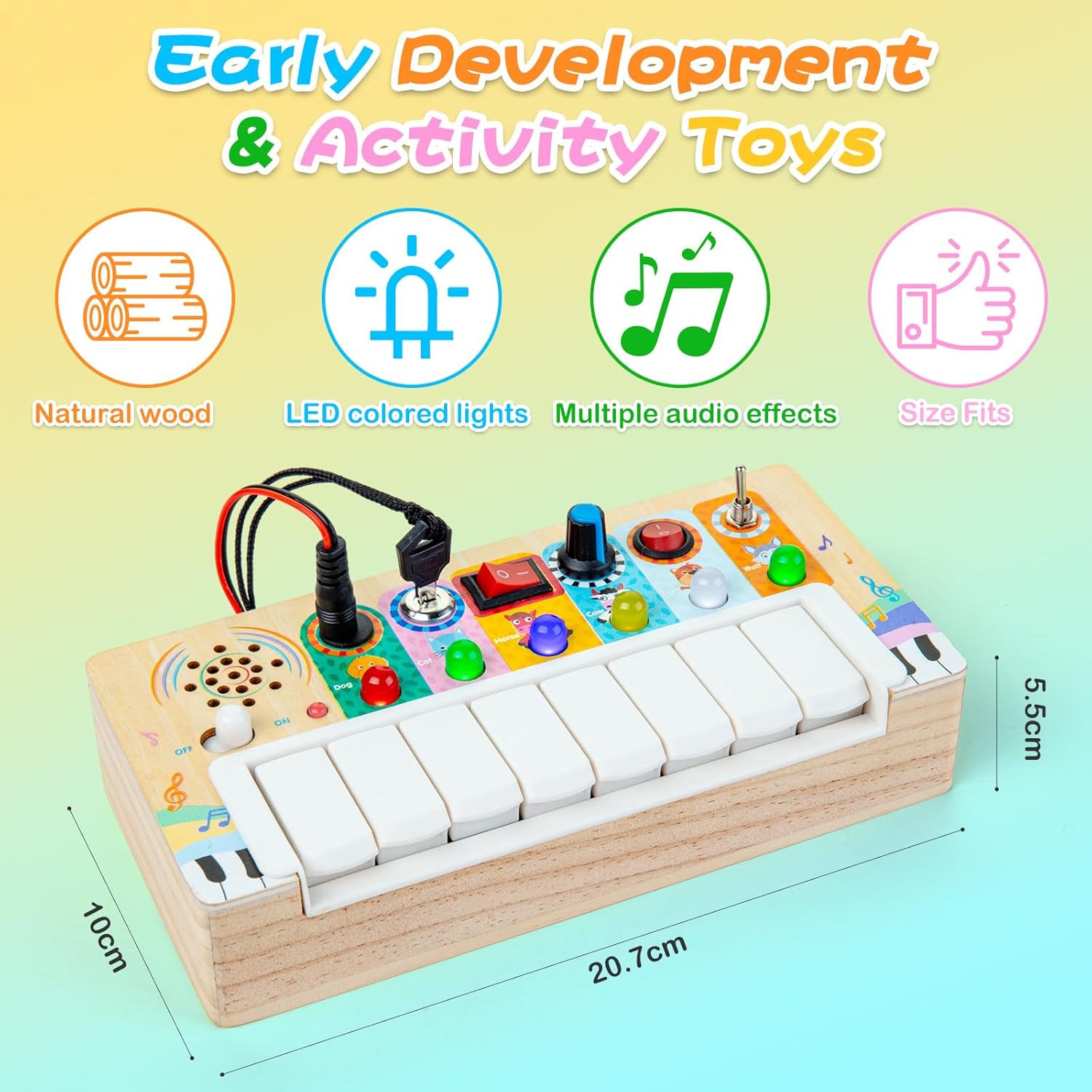 Découvrez le clavier piano enfant Sleamako, un jouet Montessori enrichi de lumières LED, offrant une busy board multifonctionnelle aux effets sonores variés pour développer la motricité et l’amour de la musique chez votre enfant.