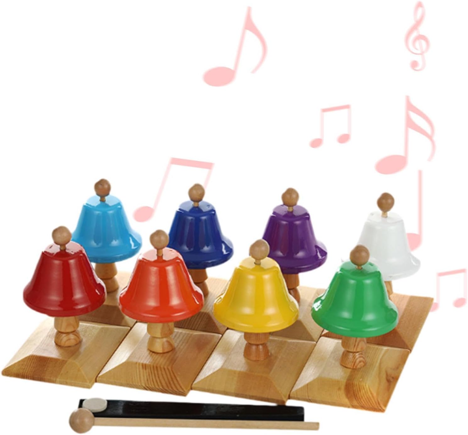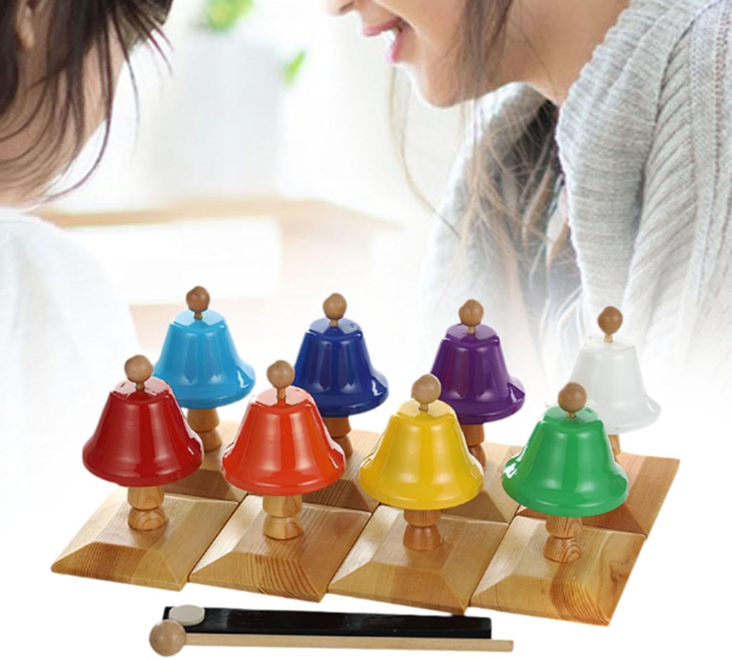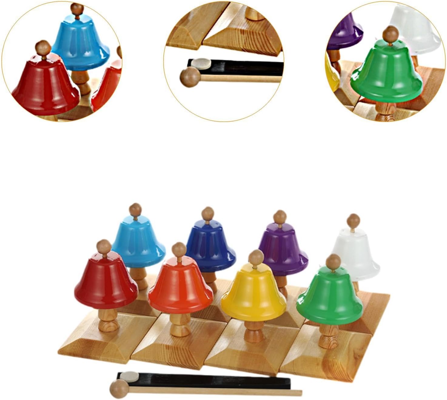 Initiez vos enfants à la musique et au développement sensoriel avec ces cloches musicales Montessori en bois et métal, offrant des notes claires et des couleurs vives pour éveiller leurs talents artistiques.