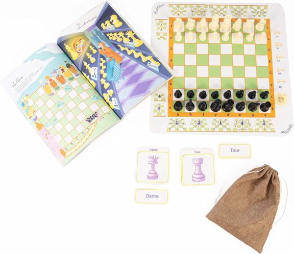Ce coffret contient tout le nécessaire pour une initiation complète aux échecs. Il se compose de 32 pièces d’échecs, un sac de rangement, un échiquier souple imperméable, des cartes images et des cartes nomenclatures, ainsi qu’un livret d’apprentissage d’échecs éducatif truffé d’exercices et d’énigmes. Conçu pour les enfants dès l’âge de 5 ans, ce kit éducatif est un outil précieux pour renforcer les capacités d’apprentissage et favoriser la réussite scolaire.