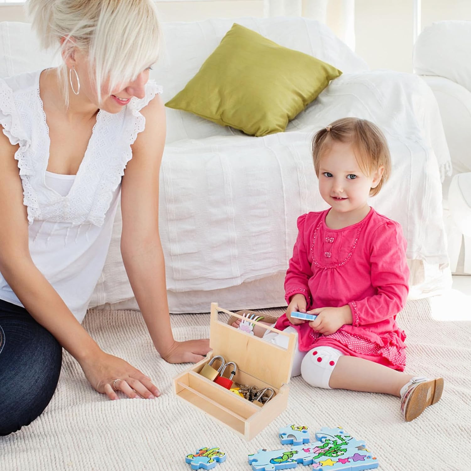 Le coffret éducatif Montessori mini-cadenas en bois développe la coordination œil-main, la patience et les compétences cognitives des enfants dès 3 ans grâce à ses activités interactives de déverrouillage et de manipulation.