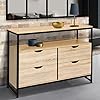 Découvrez notre Commode Montessori 4 tiroirs Detroit, conjuguant esthétiquement bi-matière bois et métal noir, design industriel et fonctionnalité avec ses 6 espaces de rangement, pour une organisation optimale à la portée de votre enfant.