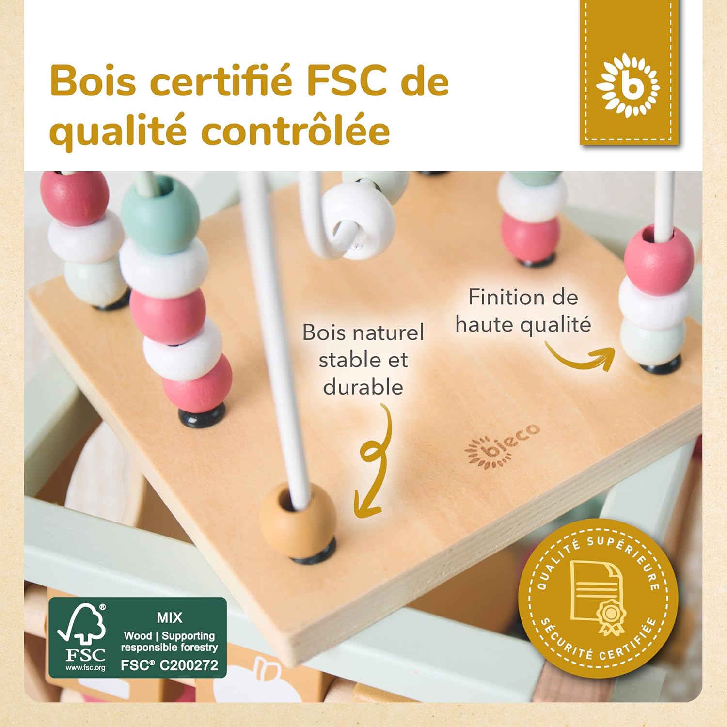 Cube d’éveil en bois durable FSC® pour bébé