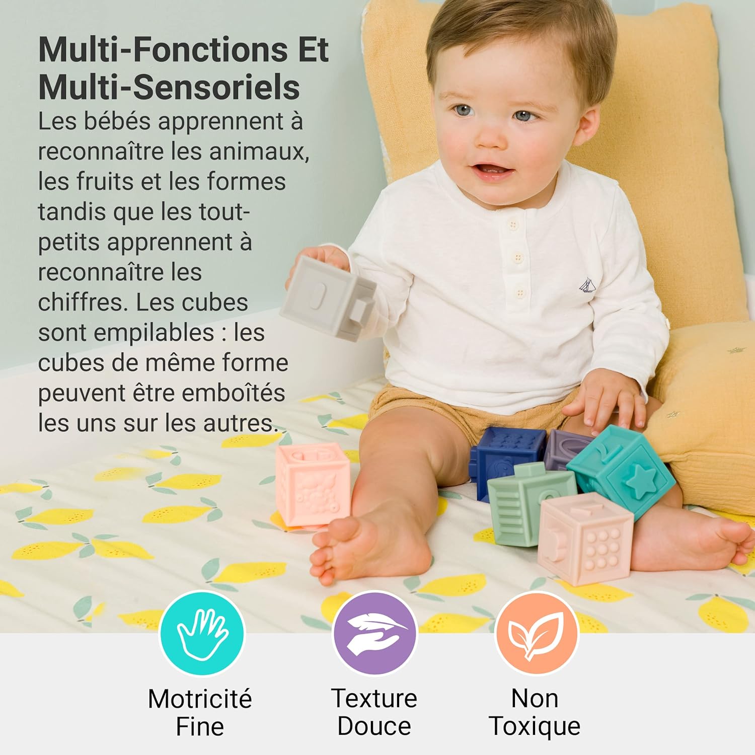 Laissez votre enfant grandir tout en s’amusant avec ces cubes sensoriels empilables, un jouet d’éveil incontournable qui allie apprentissage, plaisir et sécurité. Un compagnon idéal pour ses premières découvertes du monde qui l’entoure.
