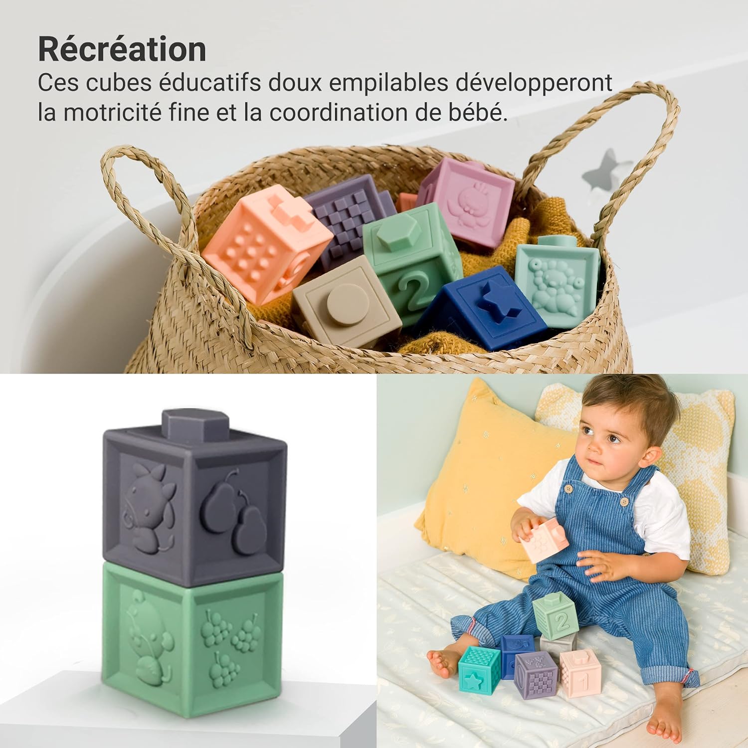 Avis clients Cubes sensoriels empilables pour bébé – jouet d’éveil Montessori