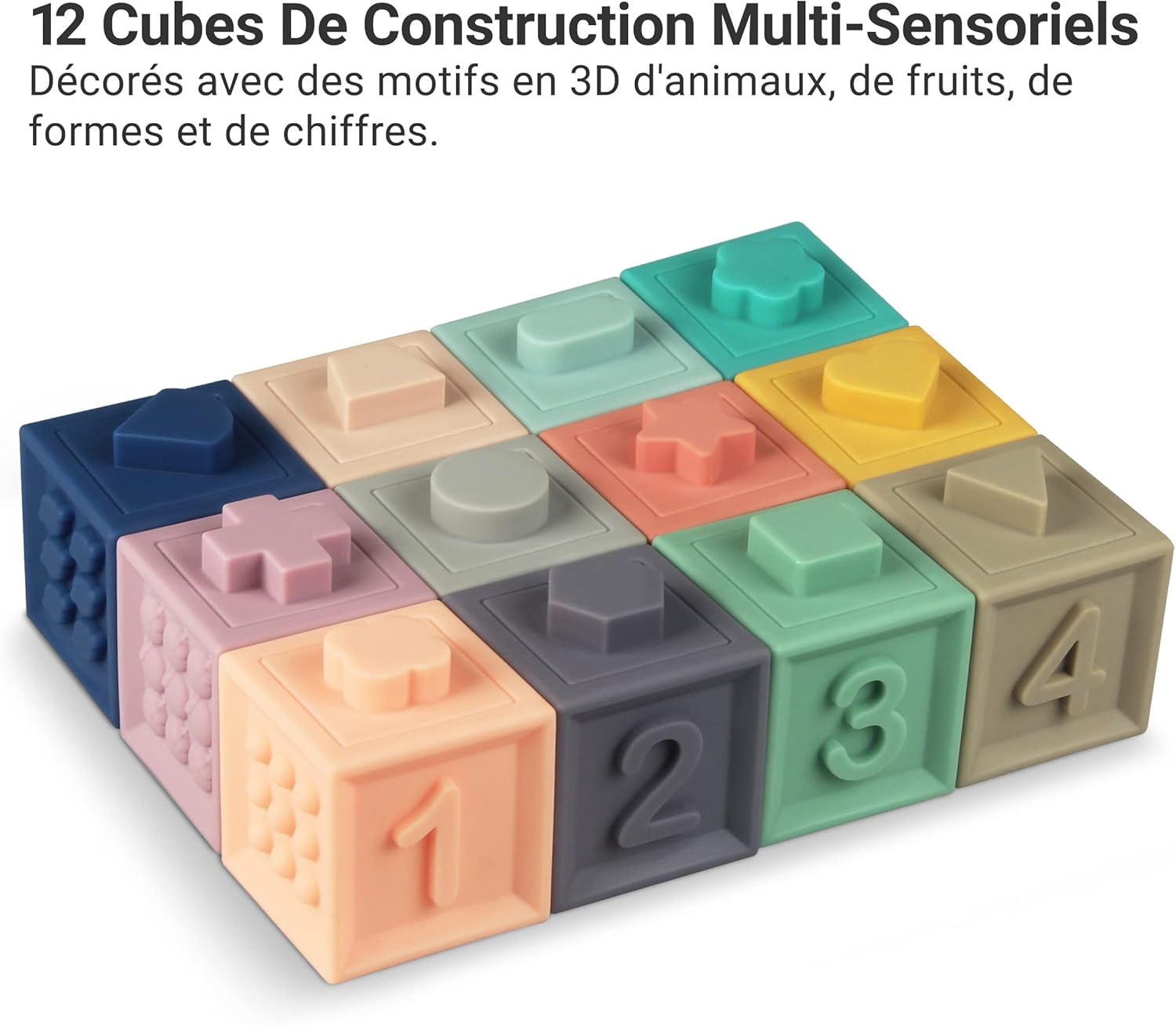 Stimulez les sens et la motricité de votre bébé avec ces cubes sensoriels empilables Montessori, conçus pour éveiller curiosité, coordination et plaisir grâce à leurs textures variées et leurs couleurs vives.