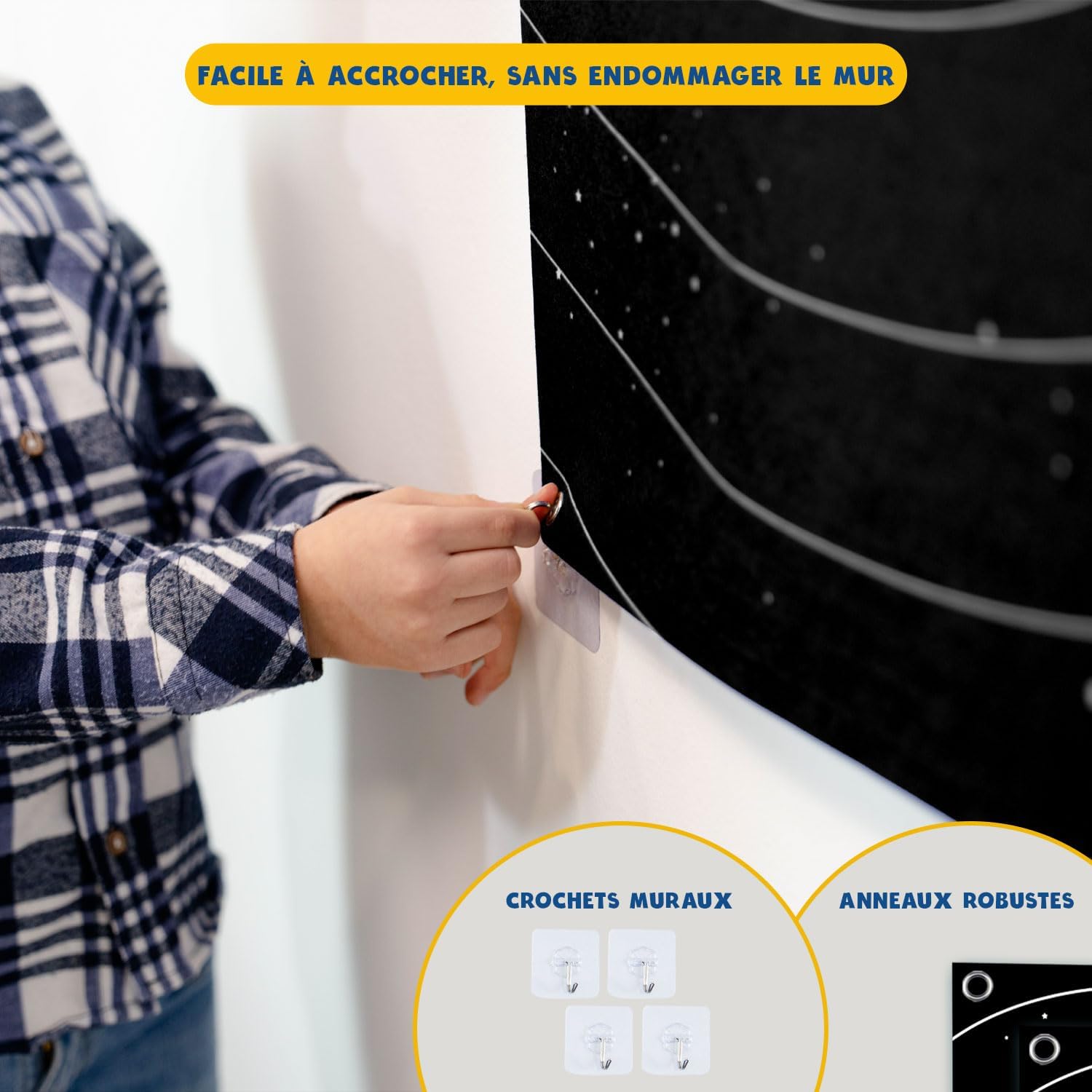 L’installation est un jeu d’enfant grâce aux crochets de fixation murale inclus. Les différents éléments peuvent être positionnés selon les préférences de votre enfant, transformant chaque session de jeu en une aventure unique. Ce jouet est non seulement éducatif mais également pratique et esthétique, faisant de lui un ajout parfait à une chambre ou une salle de jeu.