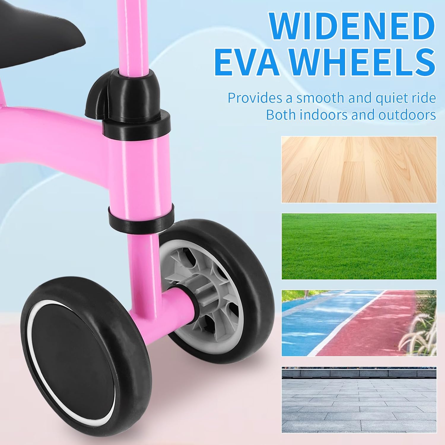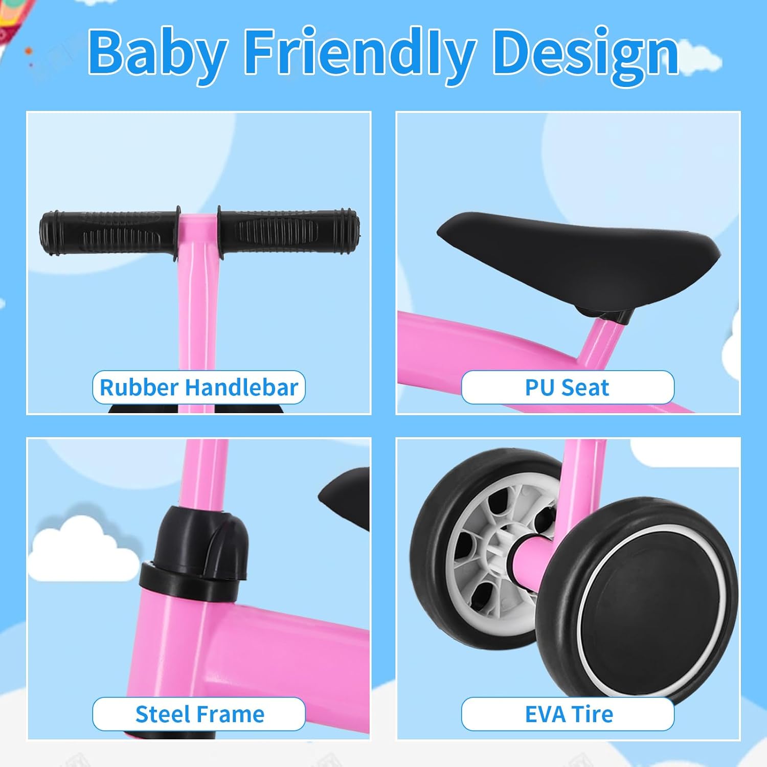 Avec son cadre en acier renforcé, cette draisienne allie robustesse et légèreté. Les poignées en caoutchouc doux offrent une prise confortable, tandis que les roues en EVA absorbent les vibrations pour une conduite silencieuse et agréable. Que ce soit sur un sol dur ou moquetté, cette draisienne garantit une utilisation sans accroc, à l’intérieur comme à l’extérieur.