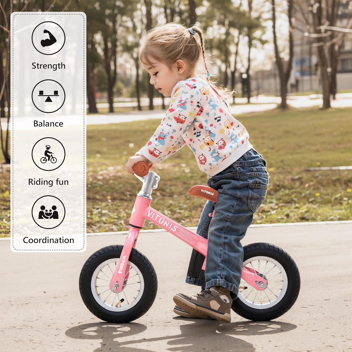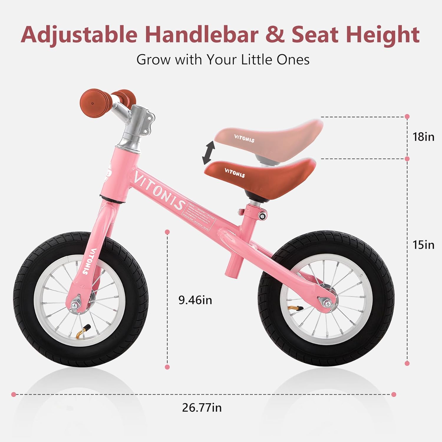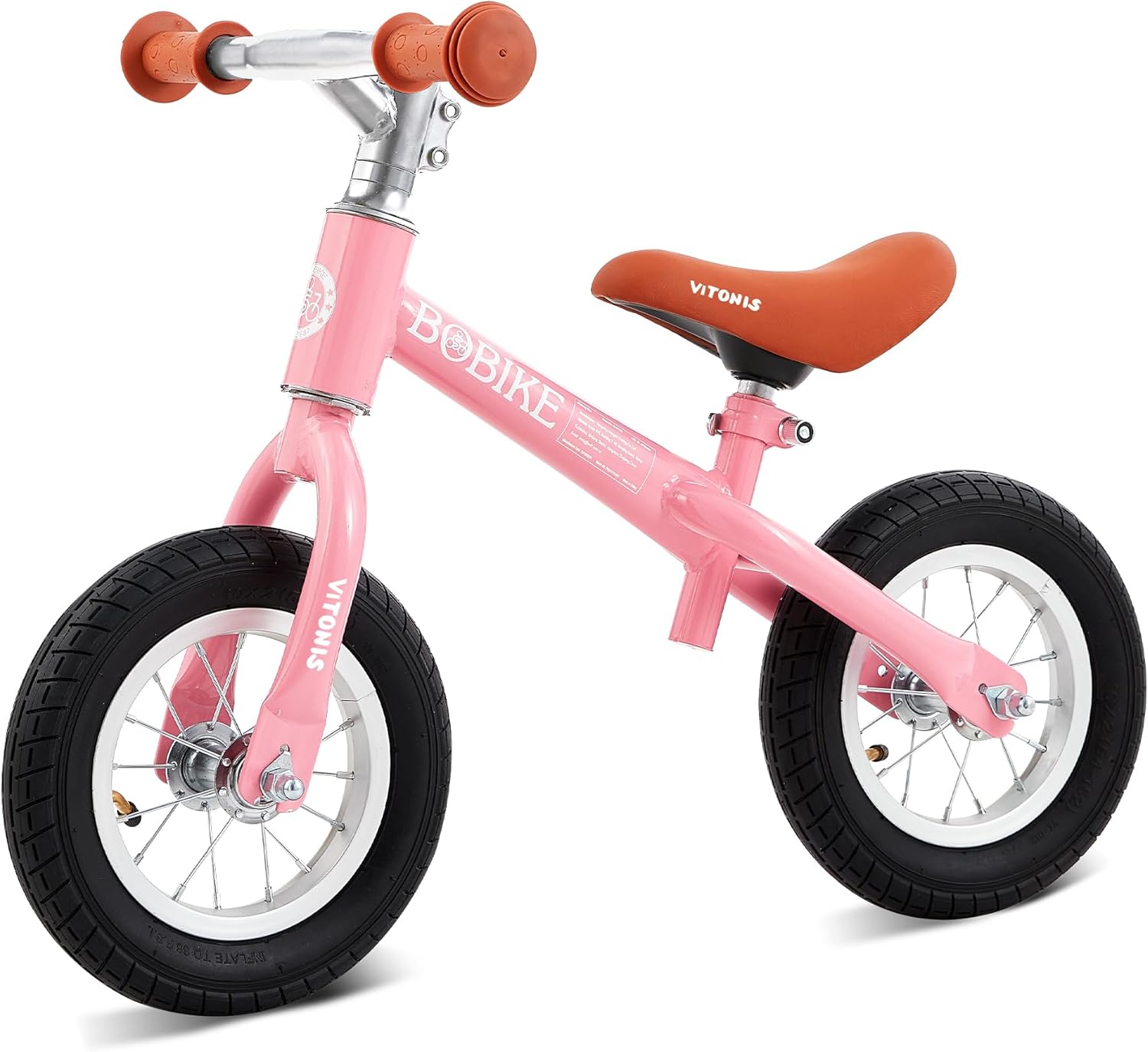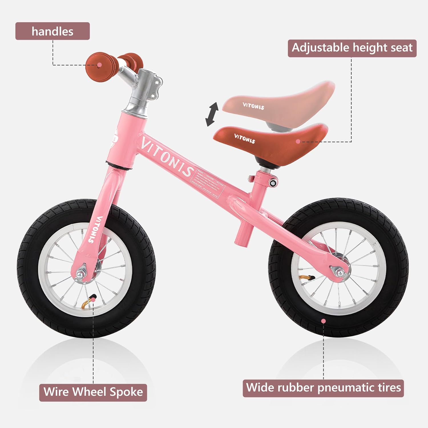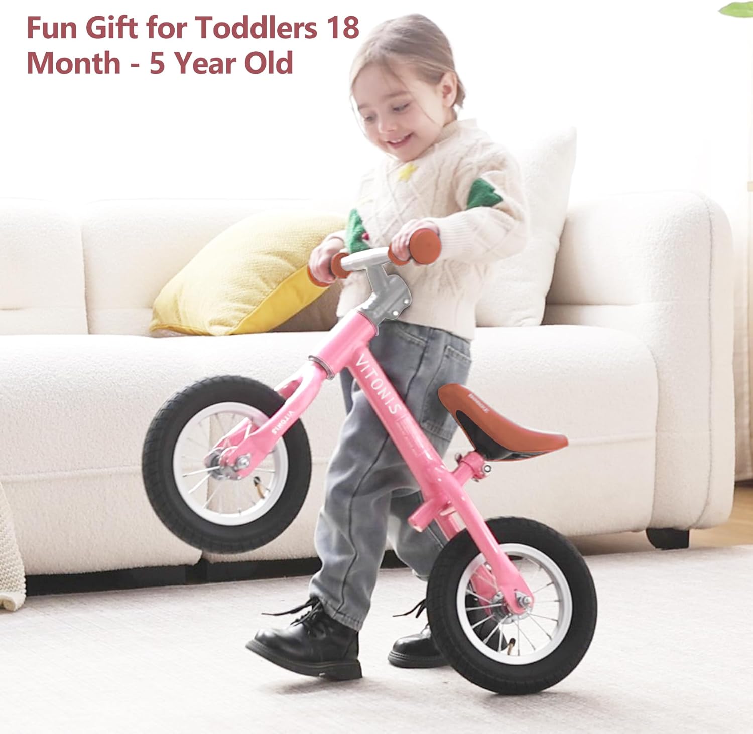Offrez à votre enfant de 1 à 2 ans une draisienne rose sans pédales, idéale pour développer son équilibre et sa coordination tout en s’amusant en toute sécurité.